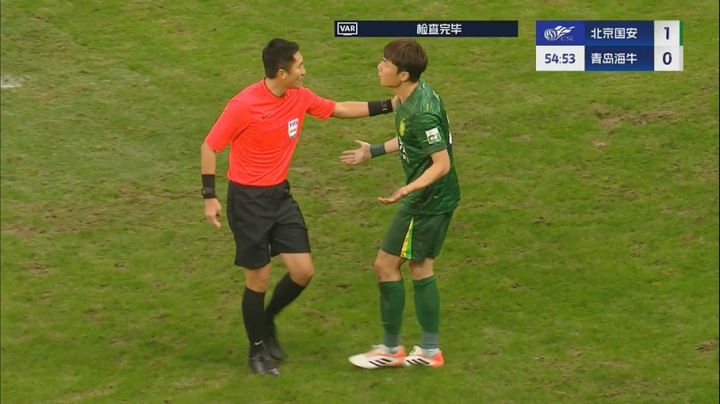 海牛1-1扳平国安!马宁回看VAR后判点,萨里奇点射破门!
