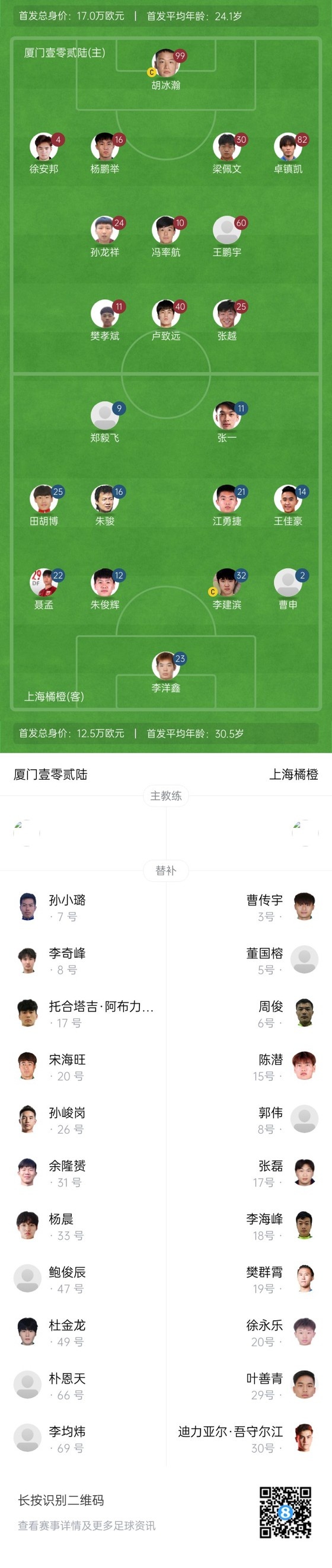 第22分钟,厦门获得点球!卢致远右路突破到禁区被朱俊辉放倒,裁判判罚点球,张越主罚点球破门,厦门壹零贰陆1-0上海橘橙。↓