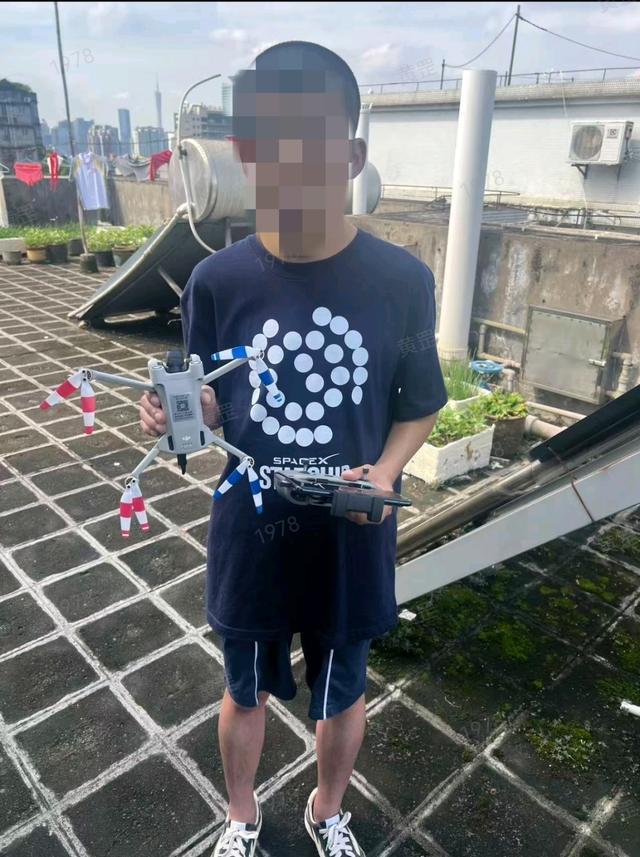 9月17日上午10时,广州警方无人机防控系统再次报警,发现天河区五山街道某建筑物附近有“黑名单”无人机起飞。天河分局立即调度自动机巢警用无人机升空搜索,同步派出警力携带反制装备前往现场。随后,警方在一建筑物楼顶抓获正在操作无人机的张某。