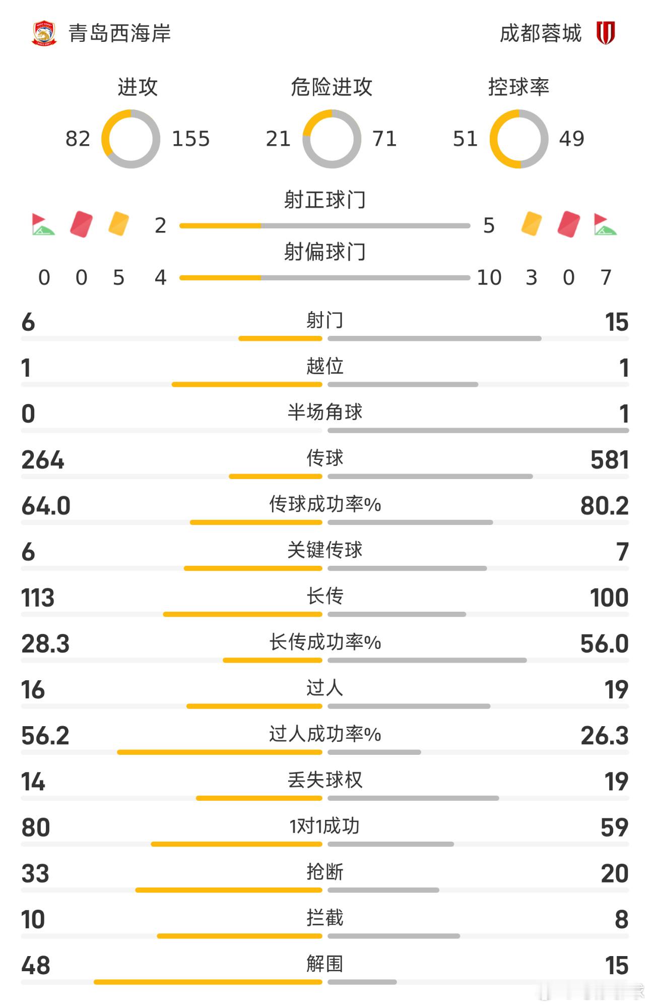 10月26日讯 25赛季中超联赛第28轮,青岛西海岸在主场迎战成都蓉城。第30分钟,德尔加多后场失误,阿齐兹助攻戴维森抢点破门。第57分钟,古尔芬克尔中场传球失误,阿齐兹再度反击助攻戴维森扩大比分,青岛西海岸2-0领先。第68分钟,罗慕洛角球助攻费利佩头球破门扳回一球。比赛补时阶段,周定洋混战中破门因越位在先被判无效。补时第10分钟,韩鹏飞助攻费利佩混战读秒扳平。最终青岛西海岸在主场以2-2战平成都蓉城。青岛西海岸vs成都蓉城中超联赛青岛西海岸