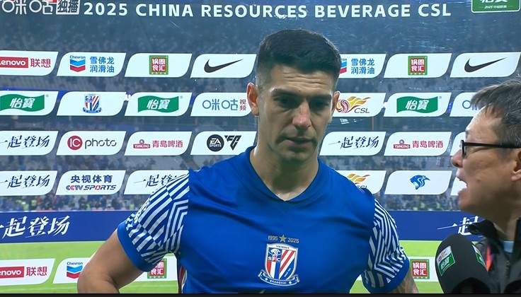 直播吧10月26日讯北京时间10月26日19:30,中超联赛第28轮,申花2-2绝平大连英博错失追分良机,赛后打进绝平点球的路易斯接受场边记者采访。