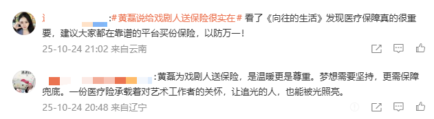这一举动被网友认为解决了众多戏剧演员的实际问题。也有很多网友在评论区呼吁:"应主动配置保险,梦想需要坚持,更需保障兜底”。