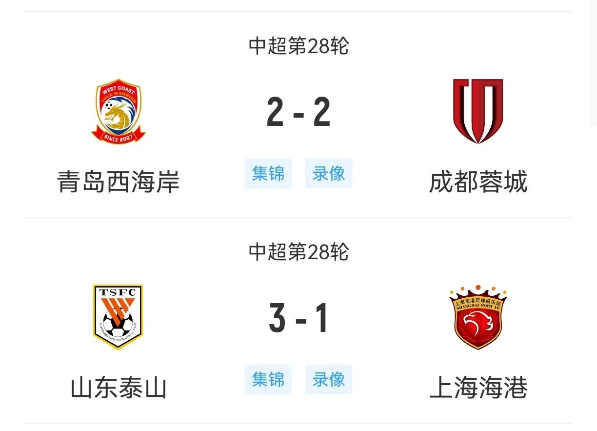 中超争冠和保级赛道被山东球队踢嗨了 先说保级战,北京国安主场输一个2比4,李霄鹏在亚泰、梅州直接对话中输掉的,竟然在国安身上找了回来。与泰山0比6之后,不知道国安怎么了,面对保级球队一直输,后面好像还有亚泰吧,是不是还要输。 争冠组前两位踢泰山和西海岸,泰山这一场大家都能想到,泰山是肯定会拼的,而且这还是韩鹏最后一场,结果其实不算意外。 没想到西海岸这边也很拼,成都到了补时最后才绝平,成都丢掉了最好的争冠机会。 后面泰山比赛没什么看点了,西海岸也无欲无求,只希望青岛海牛能完成保级了。