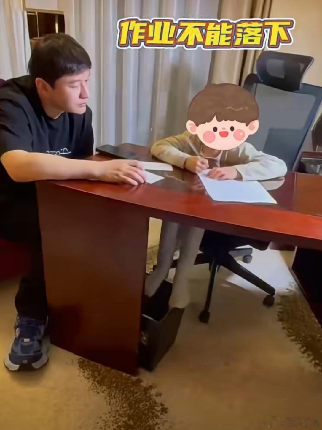 小海绵探班黄晓明 黄教主晓明哥享受到了儿子小海绵探班自己的温暖时刻,小海绵撑着大黑伞给爸爸送花。这应该是晓明哥这辈子收到的最好的鲜花了!父子俩在团聚中还一起写了作业。能够享受这种幸福时光,黄教主还要感谢小海绵的妈妈angelababy!