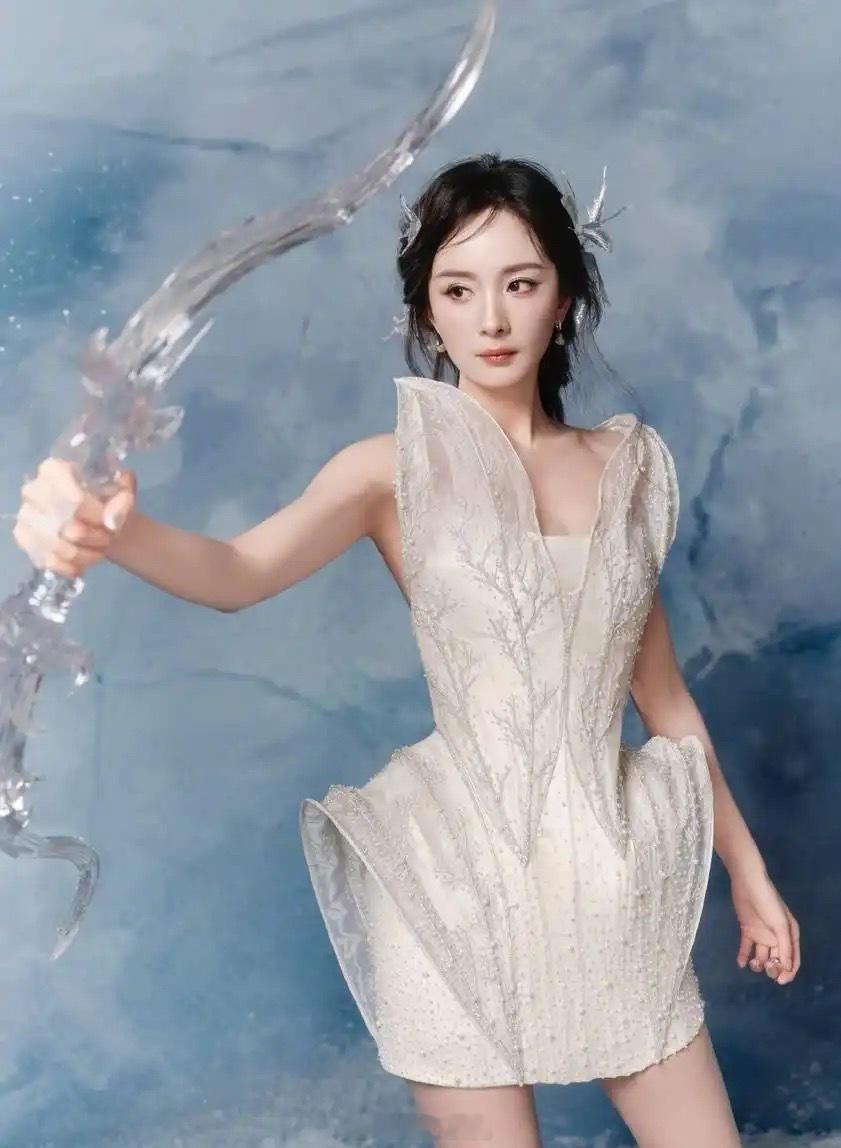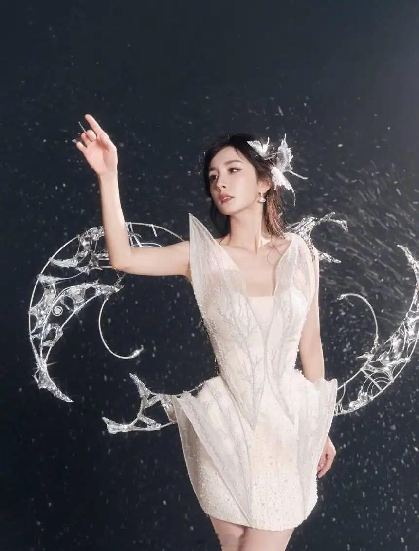 杨幂美成啥了?杨幂最新一组写真美照释出。一身银白色连衣裙仙气飘飘,完美演绎精灵神