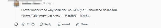 一位玩家吐槽道:“我始终想不通,怎么会有人花一万美元买个虚拟皮肤。”