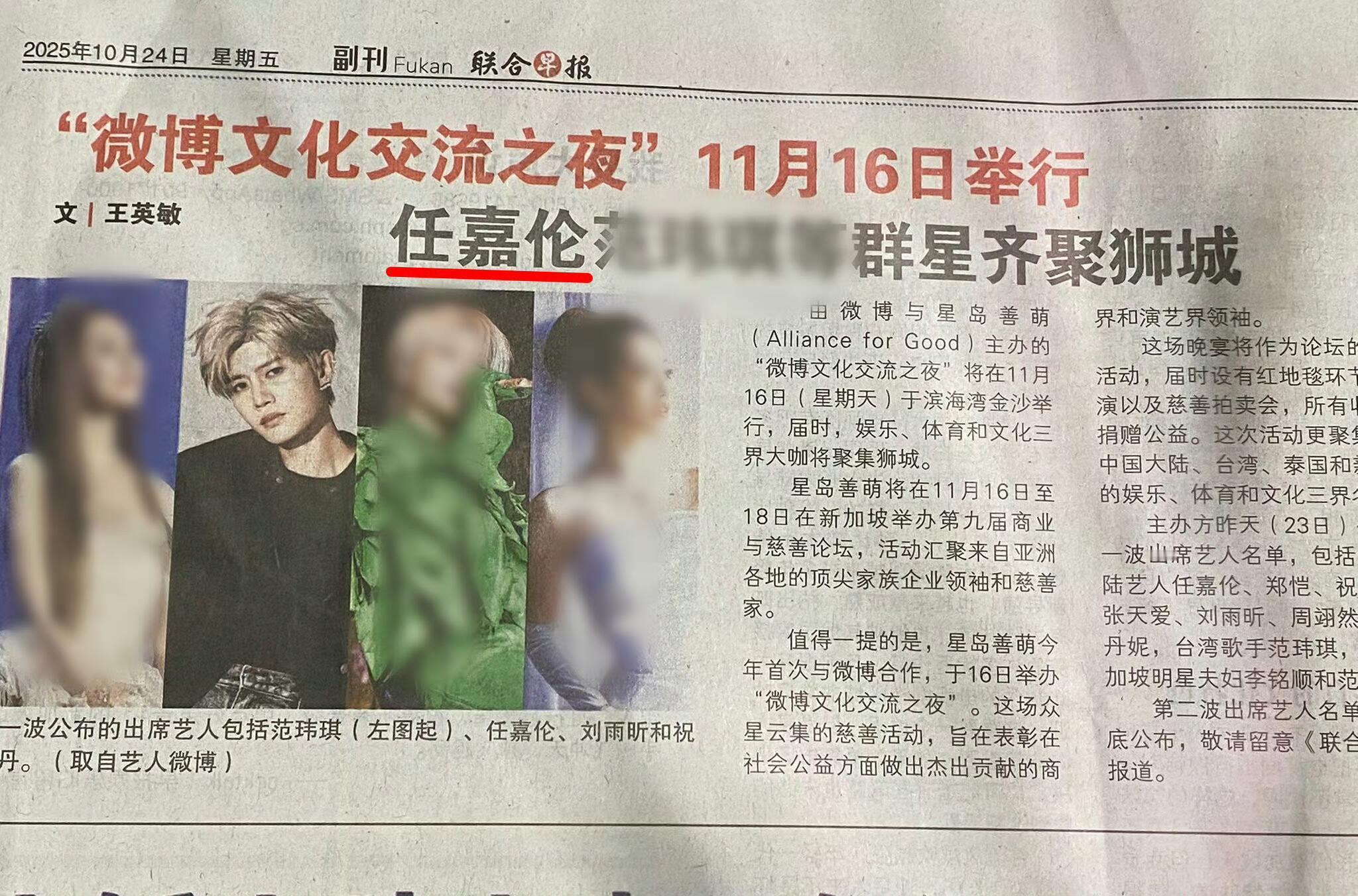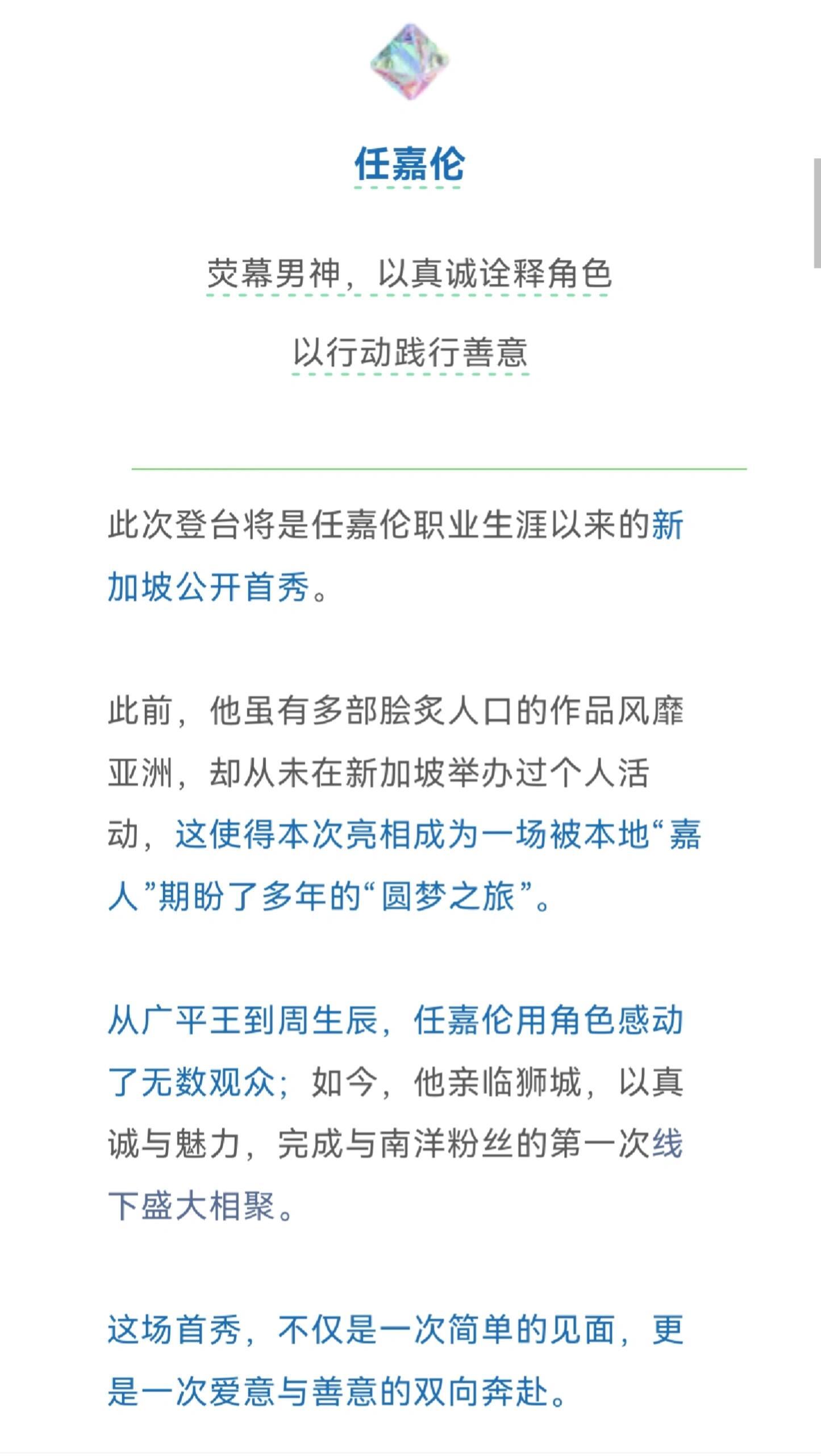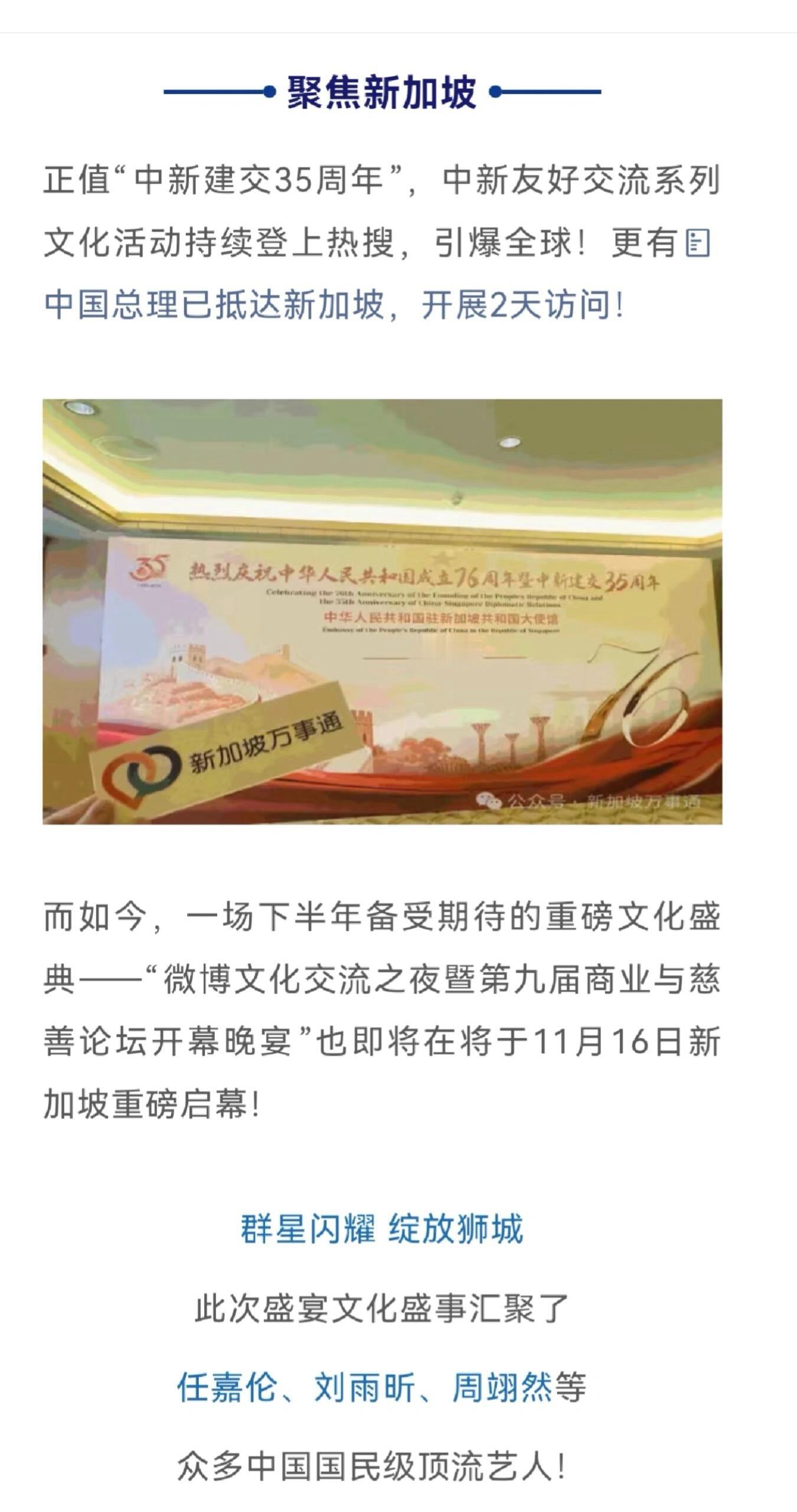 微博文化交流之夜活动,新加坡媒体已经开始预热,对任嘉伦做了极高的评价,这次活动意义非凡,不仅正值中新建交35周年,也是任嘉伦的新加坡首秀,预祝嘉伦首秀成功,也恭喜新加坡的嘉人有福啦…[打call]