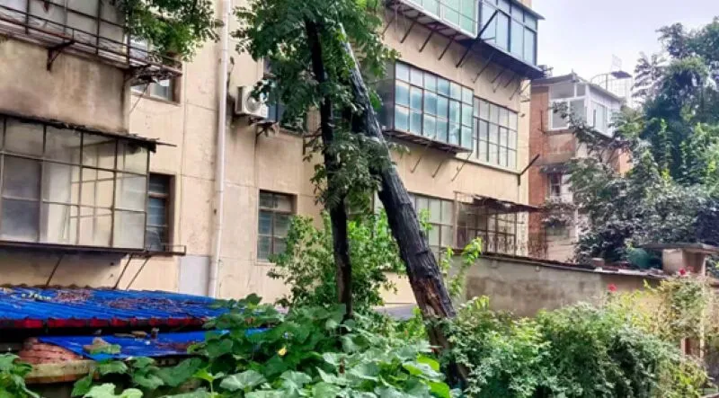 此前,市政园林管理处西城监察大队接到建井新村居民张先生反映,小区19号楼南侧一棵树龄十余年的香椿树发生倾斜,部分树枝已伸入四楼、五楼住户阳台,存在安全隐患。每逢刮风下雨,树枝拍打窗户噪声扰民,还有断裂风险,引发邻里矛盾。
