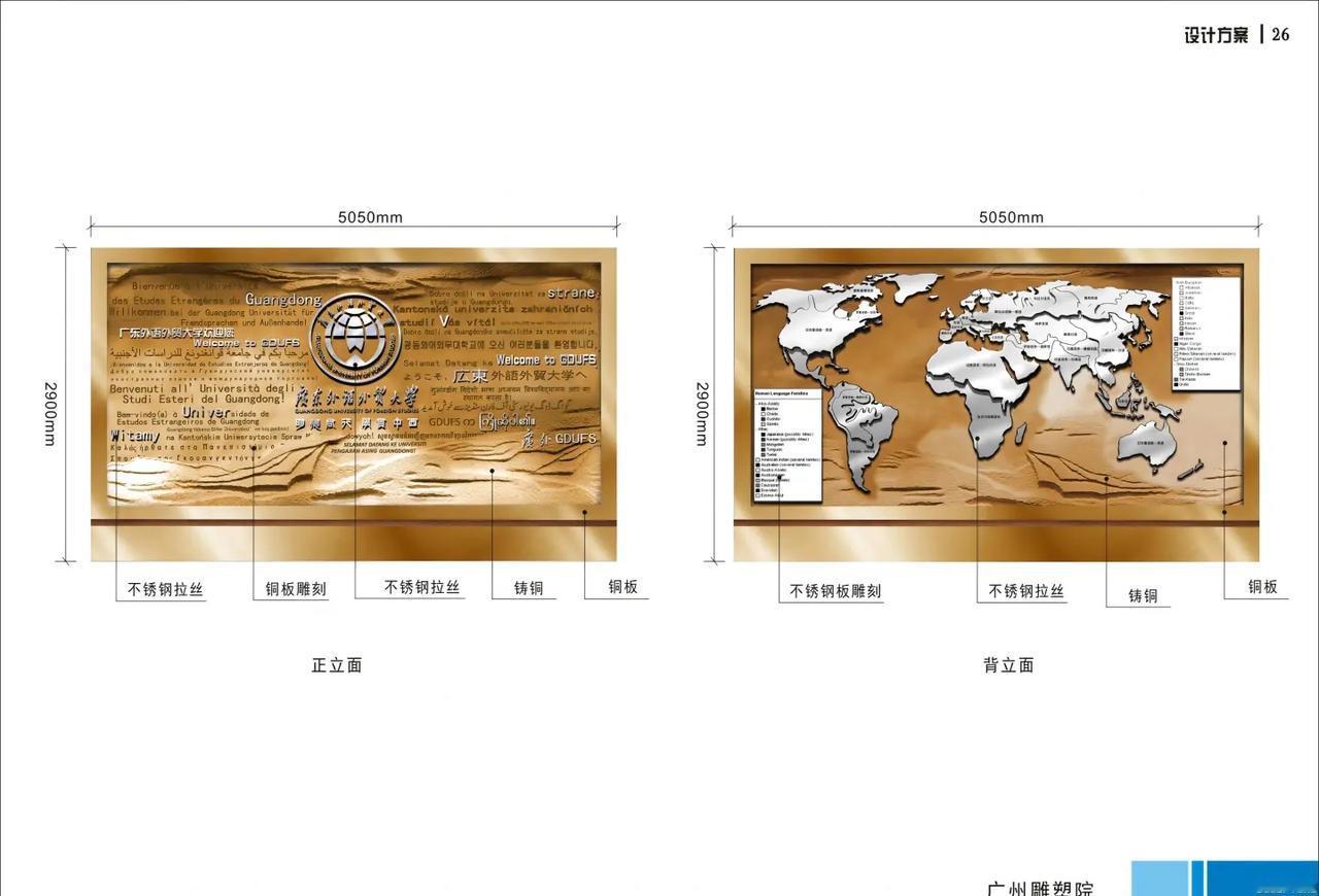 原知识城多语铜匾拟搬回大学城,放哪? 广外 文化墙 文化新地标 原知识城校区属地给广外制作了一块多语文化铜匾,重近1吨,高2.9米,长5.05米,正值学校60周年校庆之际,作为曾经合作办学的见证,拟赠送