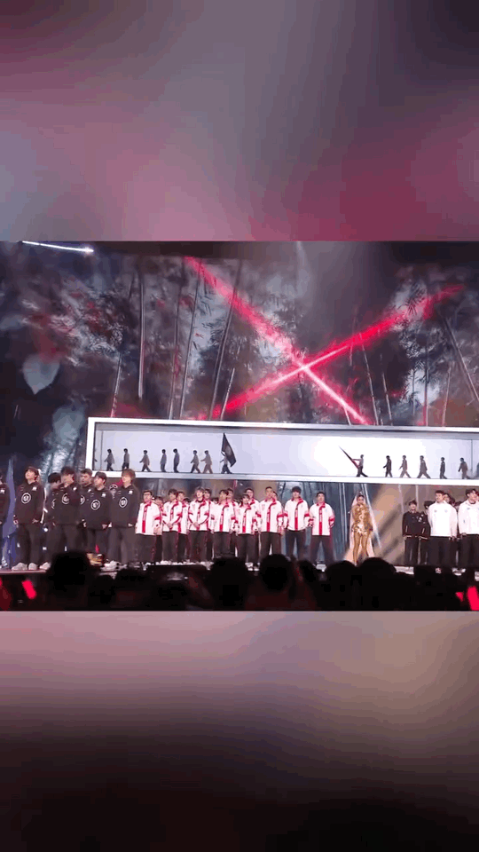 吉克隽逸和117名职业电竞选手同台 吉克隽逸在舞台上与117名职业电竞选手共同演绎《骄傲的少年》,歌声与电竞热血融合,展现了一场震撼人心的视听盛宴,真正实现了歌手与电竞的完美联动!