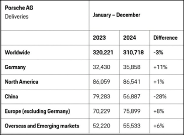 保时捷2024年各主要市场销量。