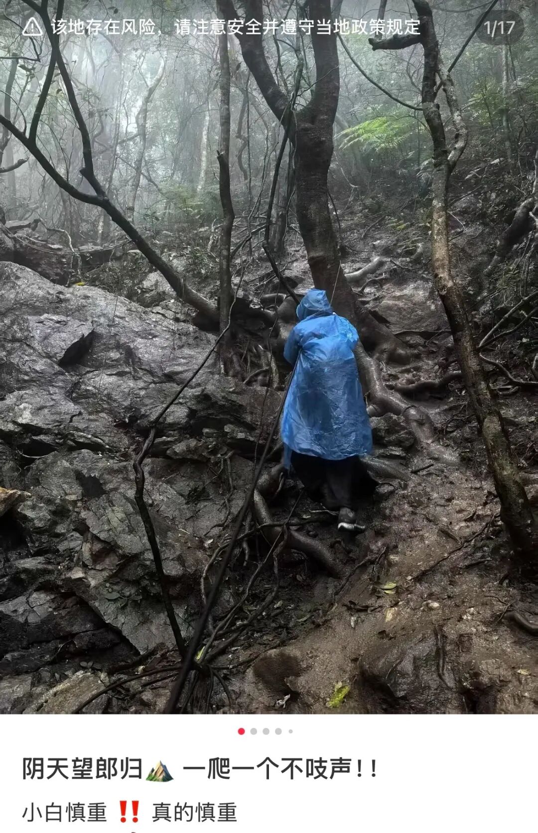 社媒上多篇“望郎归”相关的分享帖文,被平台标出:该地存在风险,请注意安全并遵守当地政策规定。图源社交平台