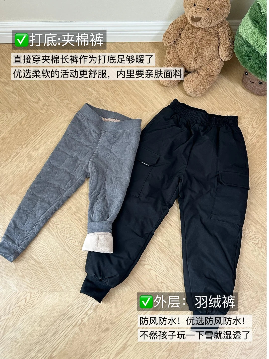 👖下装:夹棉打底裤+羽绒服
