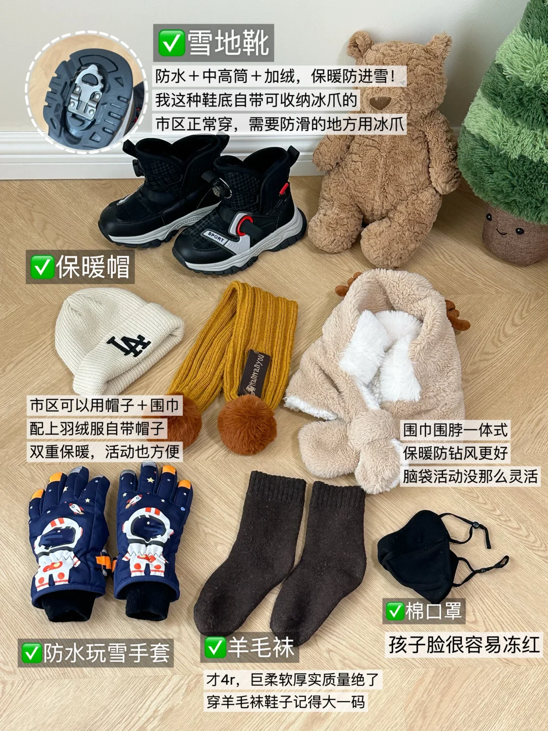 👟鞋子:羊毛袜+羊毛鞋垫+雪地靴