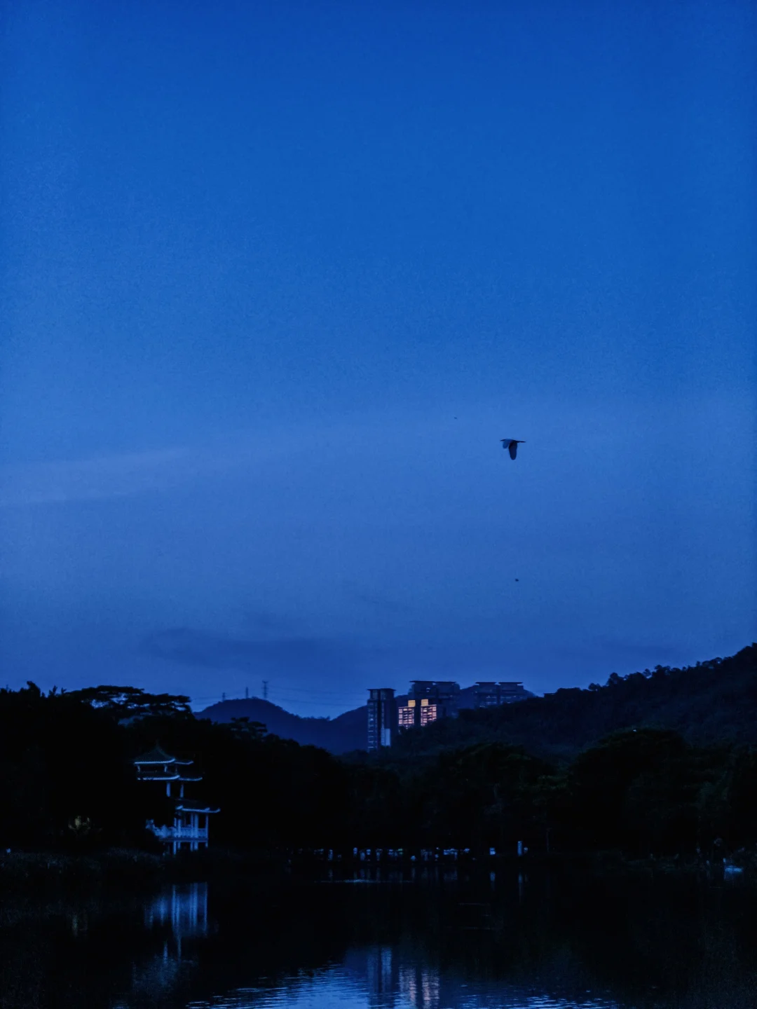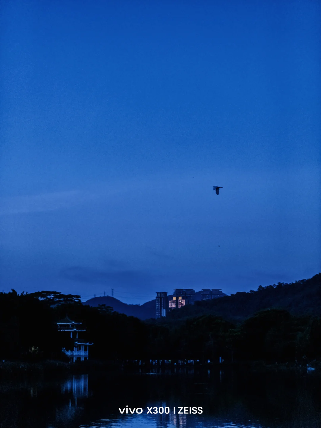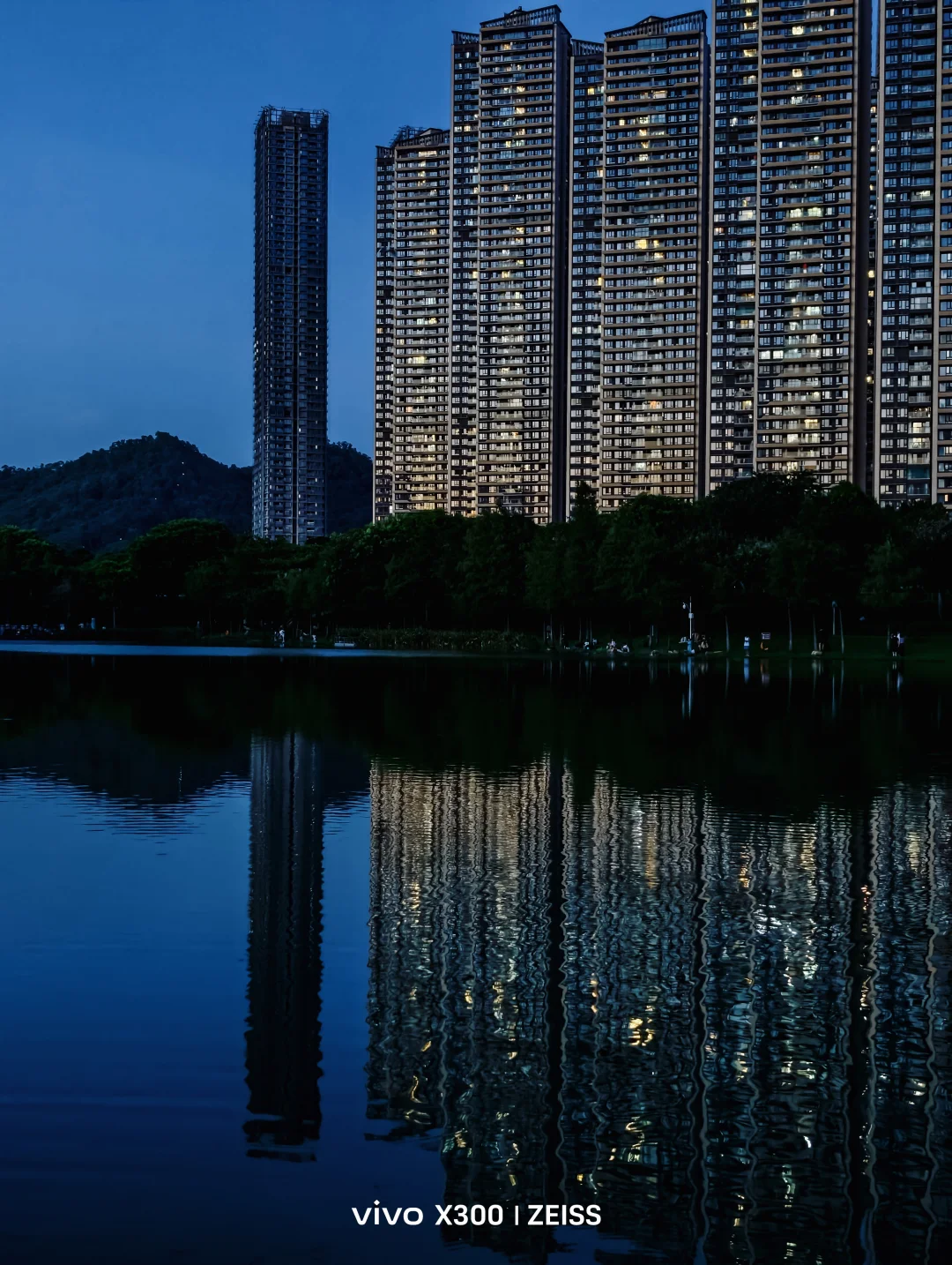 vivo X300悄悄地将这一切珍藏--草叶的纤柔,水纹的细腻,在暗光里依旧历历可辨,长焦望向远处,楼宇暖灯与蓝调天色交织,连倒影的每道皱褶都藏着温柔。