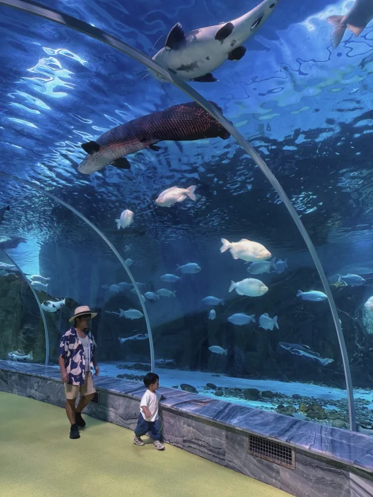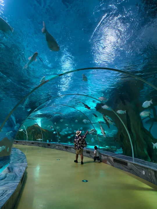 ✅海底隧道:3条隧道各有特色,最长那条能360°看鱼群,魔鬼鱼从头顶游过时,就像闯进真实海底