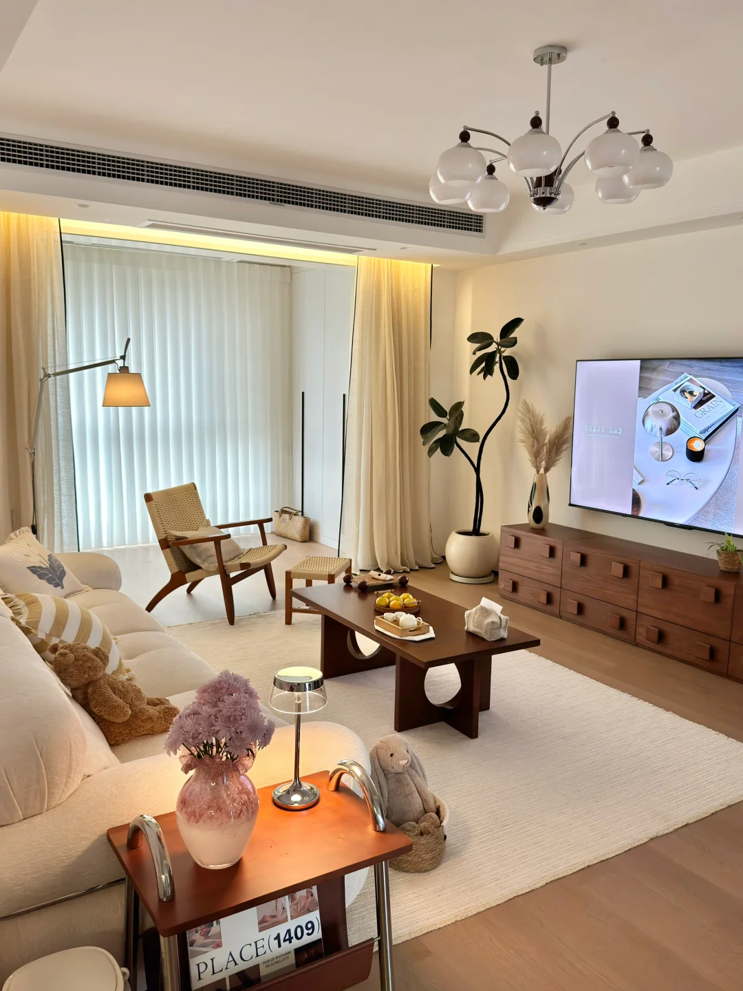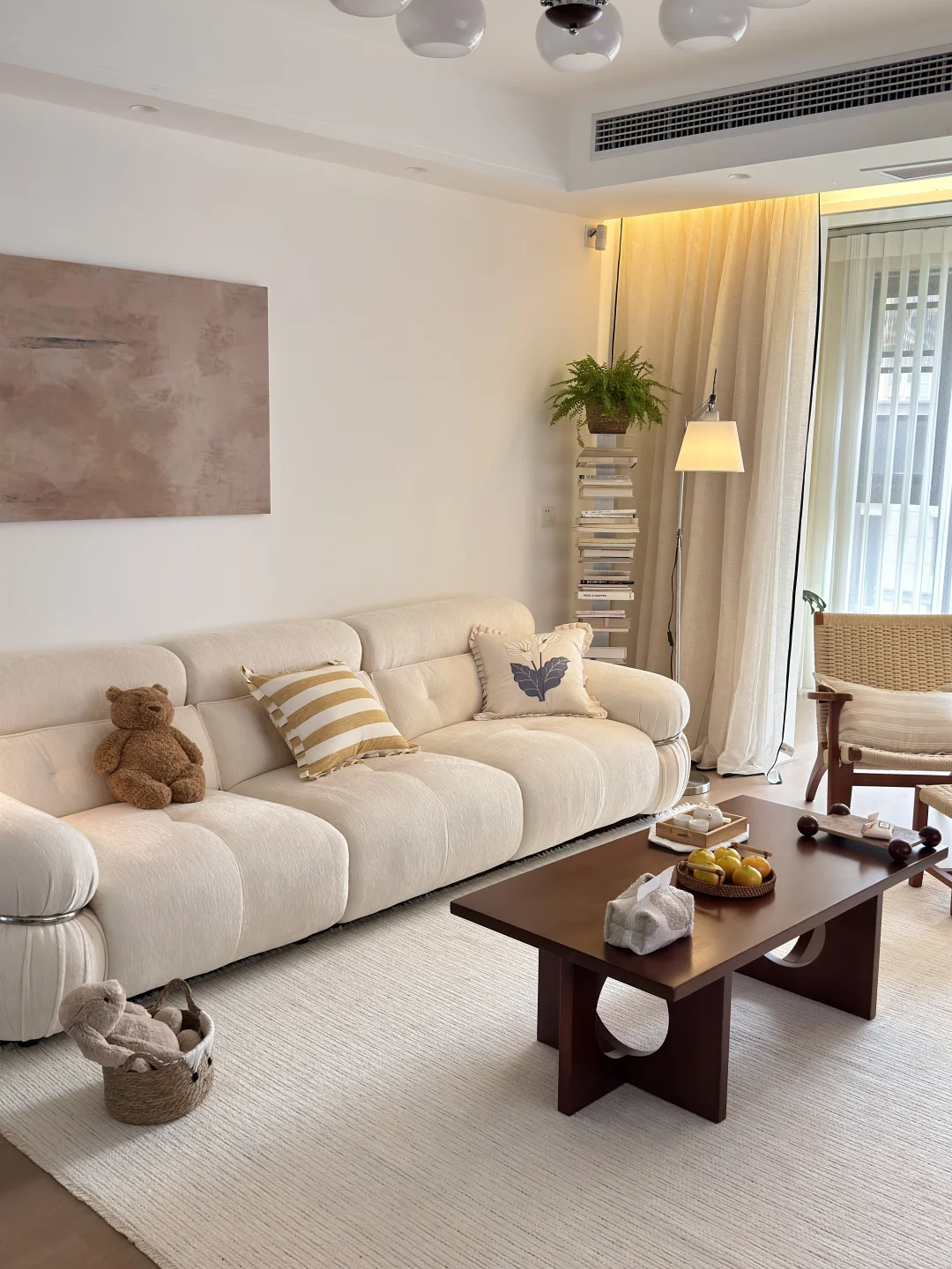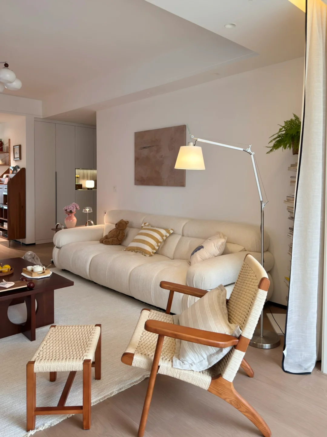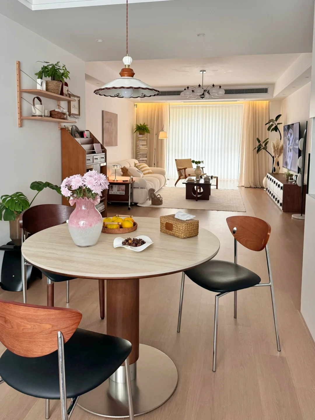 关于这个家: ▫️建面135平,套内114平 ▫️客餐厅通刷大白墙,简简单单却很显大 ▫️没有做复杂的吊顶,只用双眼皮走了一圈 ▫️阳光透过梦幻帘洒进来的时候特别温柔~ ▫️整体是中古风,家具都是慢慢挑的,每一件都很喜欢 这次装修完全按照自己的心意来 拒绝父母的插手,全是自己一点一滴琢磨出来的样子♥️ 每天下班回家,推开门就觉得: 嗯,我回来了,这就是我梦想中生活的模样啊~