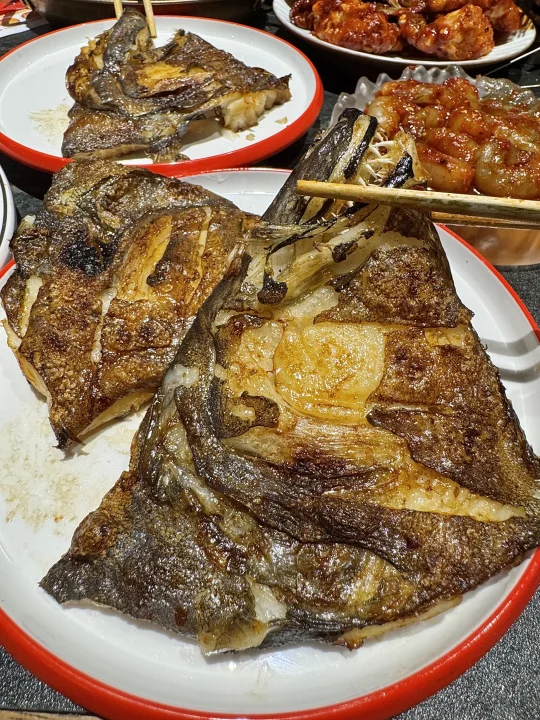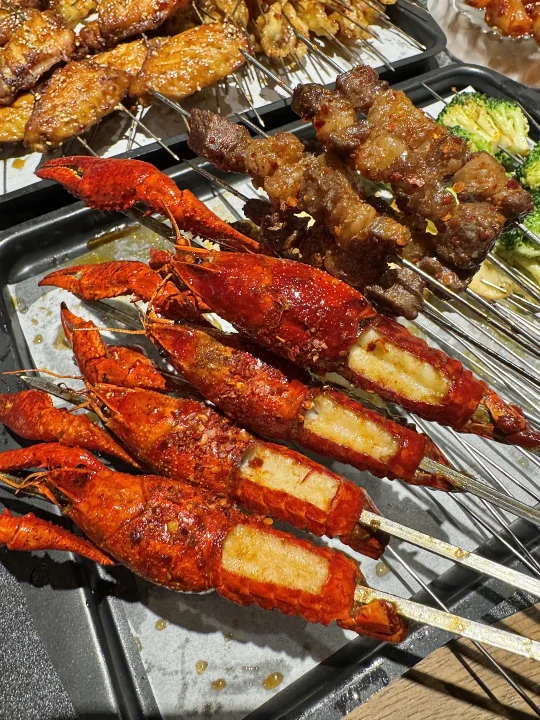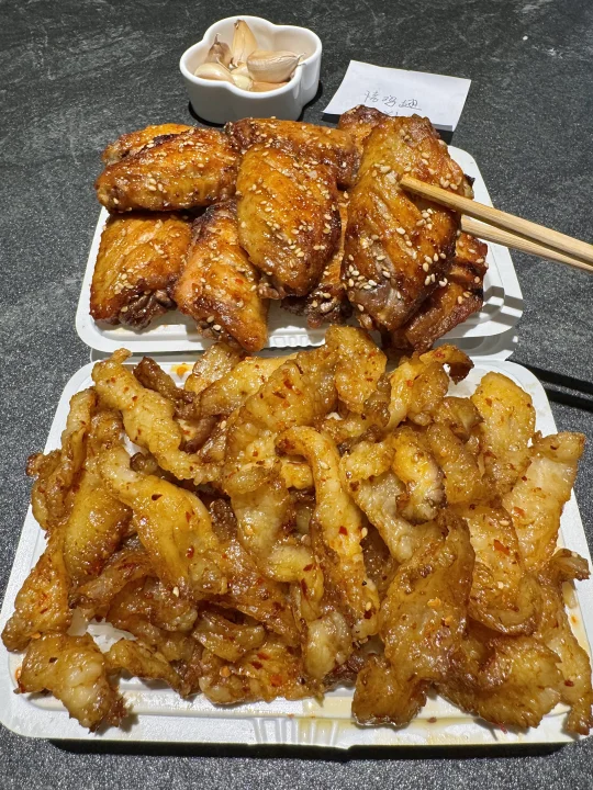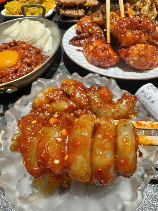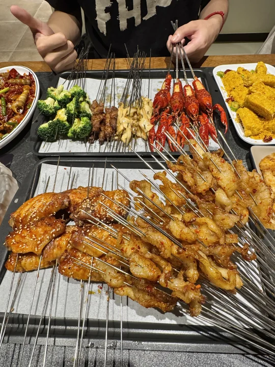 和朋友经常来这吃夜宵!! 牛胸口油、烤鸡翅、烤碟鱼头…各种烧烤外酥里嫩,味道也调得贼香!!算是我心中杭州数一数二的!!
