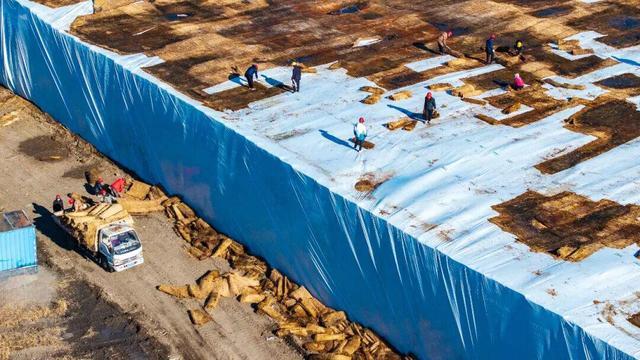 10月26日,黑龙江哈尔滨。冰雪大世界存冰场内,工作人员拆下最外层的遮盖,揭开冰垛的第一层“面纱”。接下来,一旦气温达到施工标准,将第一时间启用存冰。据悉,这20万立方米存冰,是第二十七届哈尔滨冰雪大世界冰建景观的重要基础。