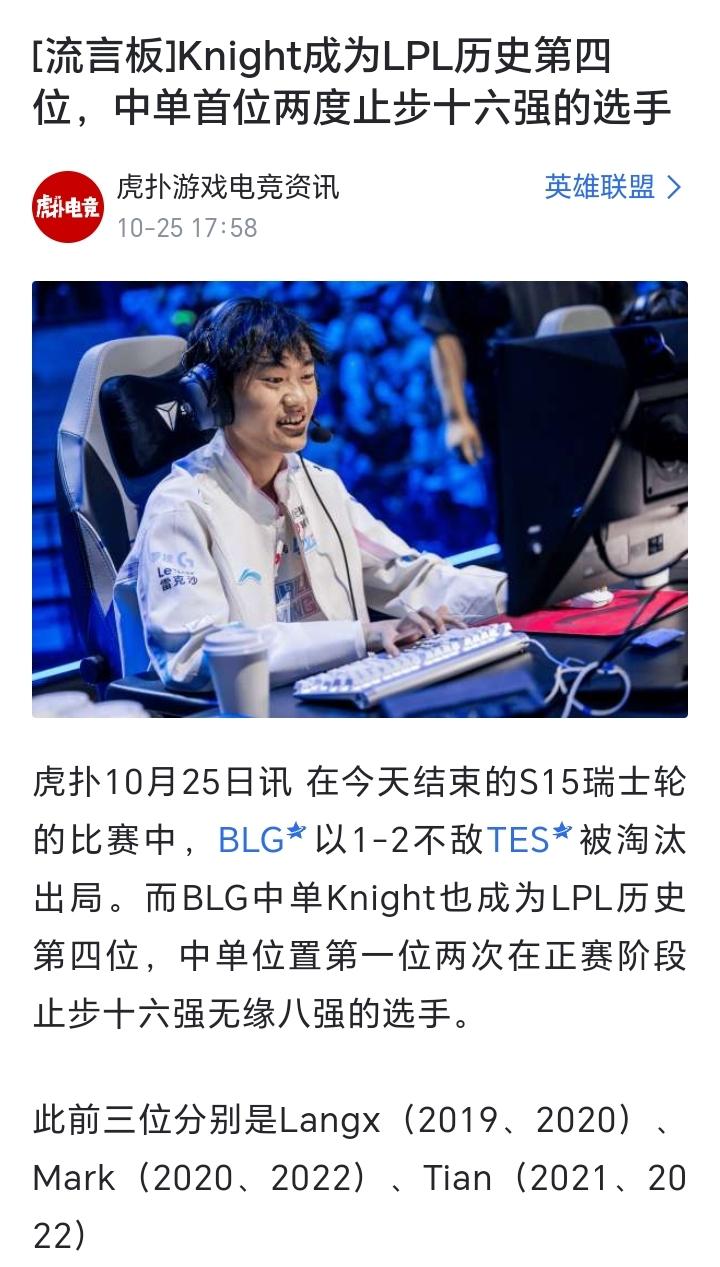 想想knight这几年在联赛中的统治力,23年春夏冠军、24年春夏冠军、25年夏季冠军。然后整了个两次世界赛十六强的战绩真是挺无语的!!! 不过想想lpl还有个很尴尬的记录就是:十大选手全员都有过小组赛没出线的奇迹。。。 LPL 英雄联盟[超话]