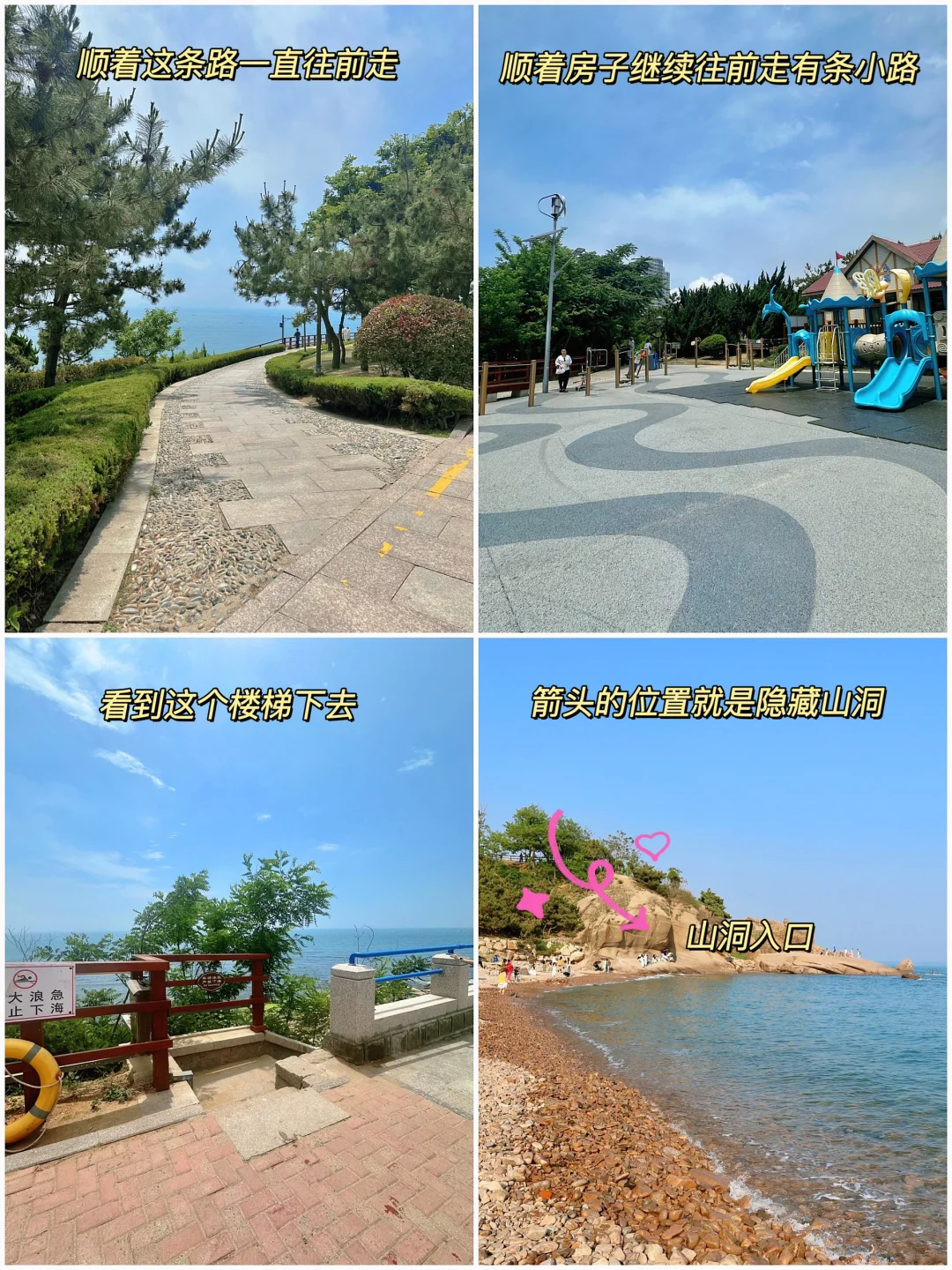 从西往东走:❶八大关几个洞穴-❷燕岛山公园洞穴-❸方形油画框洞穴-❹石老人洞穴