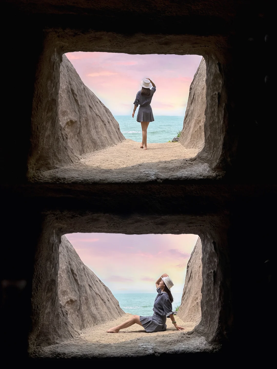 🌊机位路线:蝴蝶山洞—海边堤坝—浴场山洞