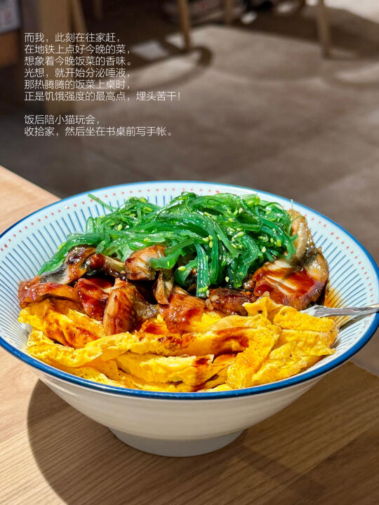 而我,此刻在往家赶,在地铁上点好今晚的菜,想象着今晚饭菜的香味。光想,就开始分泌唾液,那热腾腾的饭菜上桌时,正是饥饿强度的最高点,埋头苦干!