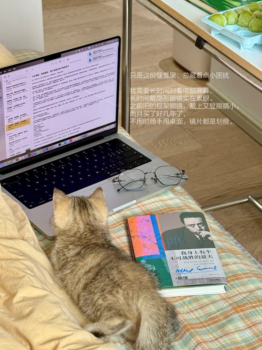 我需要长时间对着电脑屏幕,长时间戴隐形眼镜实在累眼。之前旧的框架眼镜,戴上又显眼睛小。而且买了好几年了,不用时随手甩桌面,镜片都是划痕。