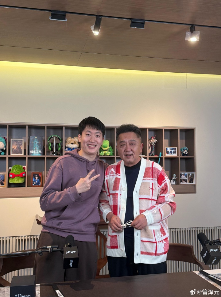 直播吧10月27日讯今日解说管泽元晒出了自己与著名相声演员于谦的合影并配文:终于让谦大爷给我捧上了!