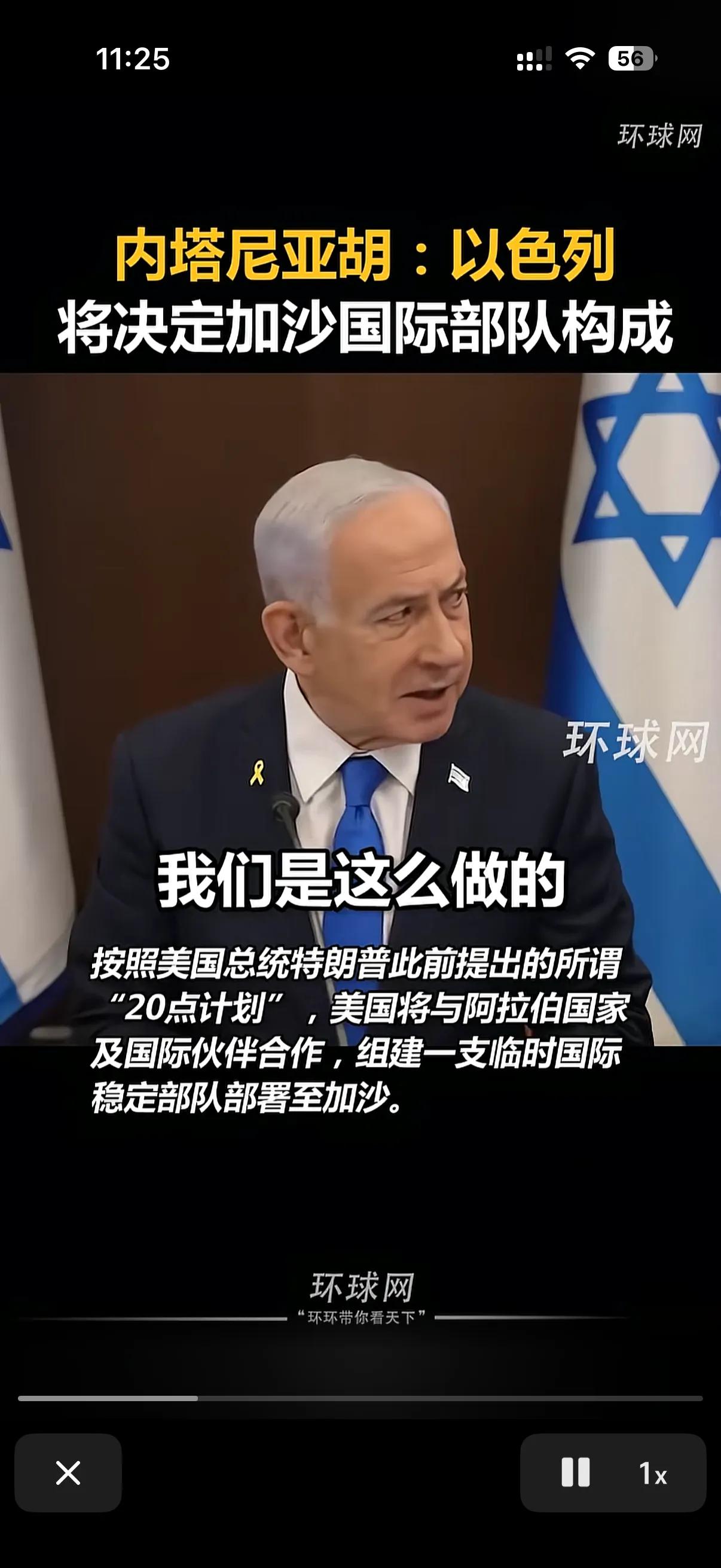 这美国和以色列联手吞并加沙事都不打算藏着掖着了,直接明牌了! 昨天特朗普说多国联合部队准备进驻加沙,哈马斯不放下武器就干掉你! 今天以色列总理就发表讲话说,没错多国联合部队要进驻加沙了,但是多国部队的军队构成和谁能来,要由以色列来决定! 换句话说经过以色列审查的军队那就等于多国出人帮着以色列占领加沙了! 而且这吐槽支多国联合部队,还负责训练战后重建的巴勒斯坦警察部队! 这等于是从上到下都安插了以色列的人员! 内塔尼亚胡还强调,以色列和美国属于主权独立的国家,不是谁领导谁!看来哈马斯是在加沙存在不了几天了!