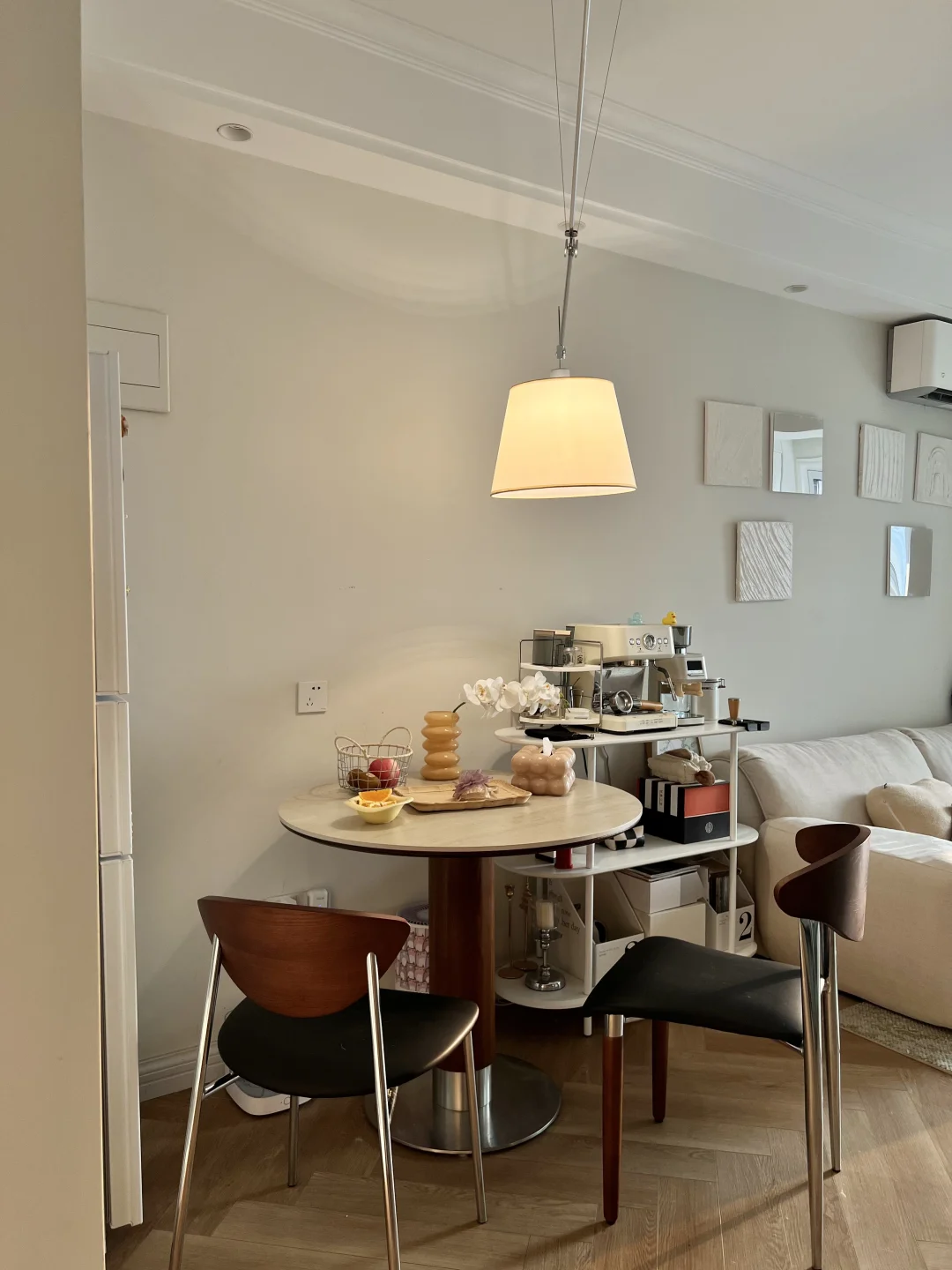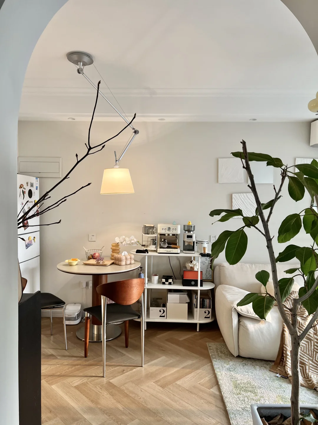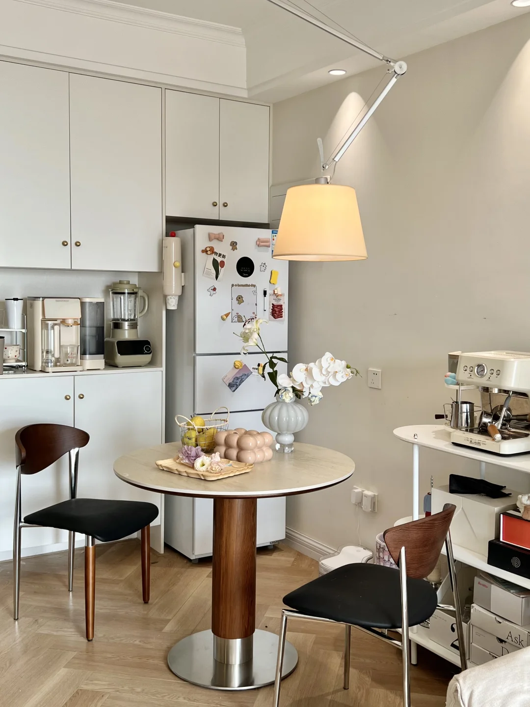 房子很小也没关系 好在是自己单独所有~ 西户的一室一厅小房子🏠 一到傍晚🌆整个家就会变成温柔的暖色调~ 太爱这种治愈感了[偷笑R] 给家里做了一些小调整 换上了一个洞石圆桌 小巧不占地 咖啡角挪到餐厅了 整个动线更方便合理 阳台一角改造成了一平米书桌 更方便日常办公了 小家🏠虽小 但五脏俱全 也让我更懂得好好生活啦
