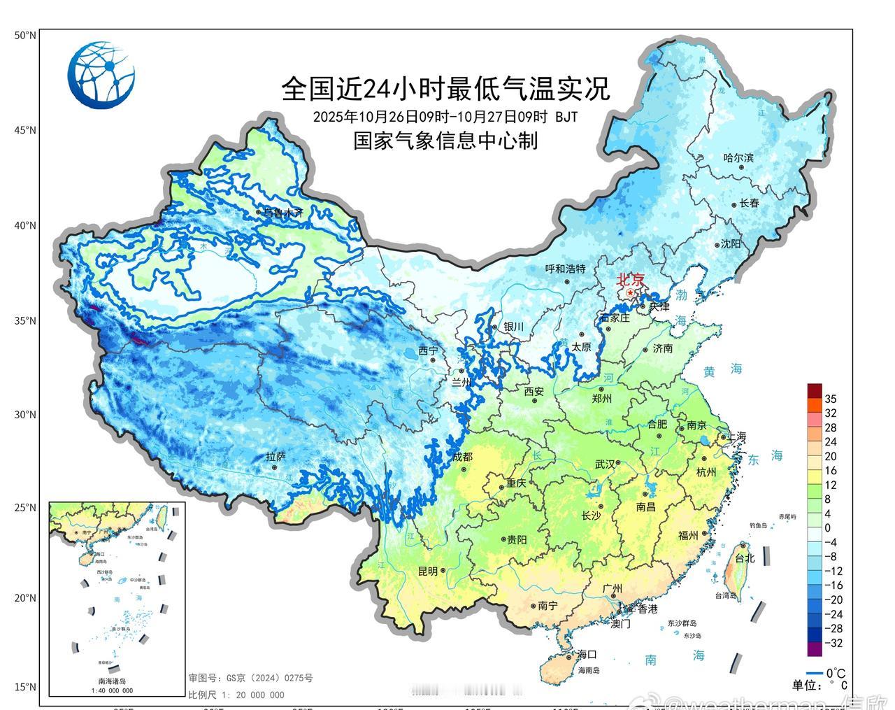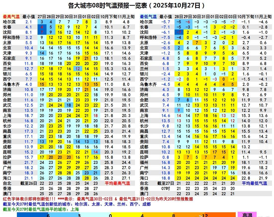 【气温创新低】今晨东北华北等地在冷空气影响下,气温下降。今晨截至8时有6个省会直辖市气温创立秋后的新低。其中,太原和西宁为立秋后首次破零。具体为:哈尔滨-5.7℃、太原-2.6℃、天津西青-1.2℃、西宁-1.2℃、兰州1.5℃、成都温江10.8℃。