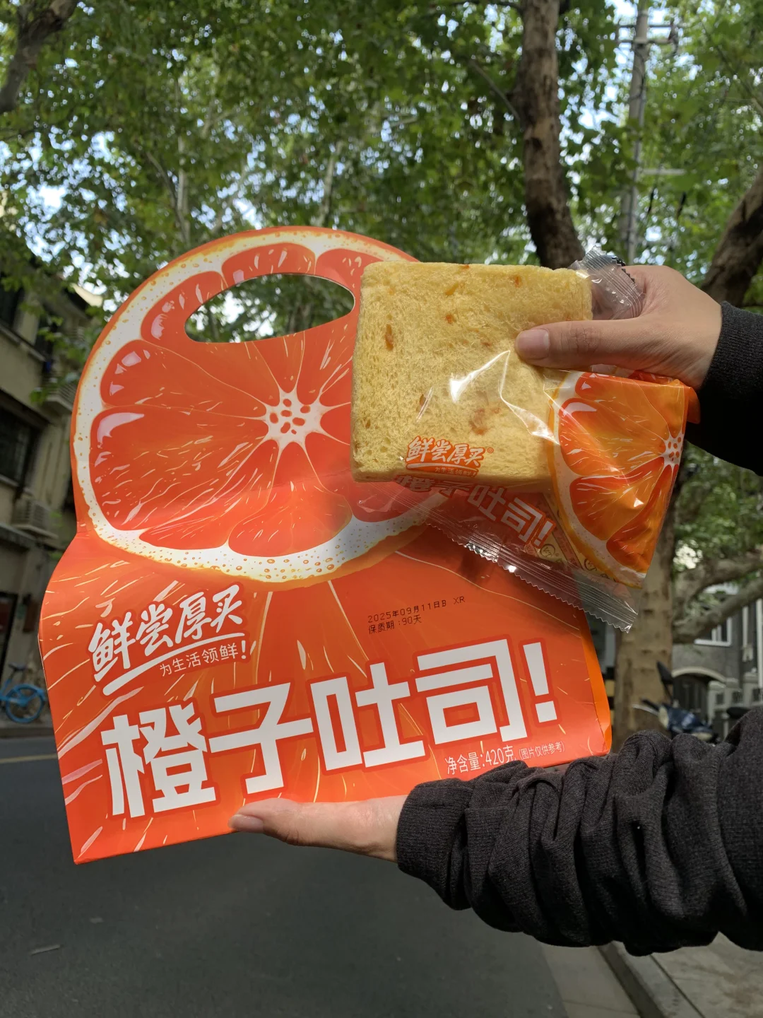 难得早起 用咖啡和吐司开启🔛新的一天 今年的初秋是橙子味儿的🍊 小面积的橙色可以点亮单调的穿搭 提着鲜尝厚买橙子吐司出门 也是今日搭配的小巧思 内里独立包装的小吐司们排排放 纯牛奶和面,配料干净健康! 里面还添加了橙丁皮 一口下去安满满的橙子香 开袋即食 饿的时候来一袋好满足! 好面包 鲜尝厚买! 橙子的清香配上柔软拉丝的面包体 Yummy!😋