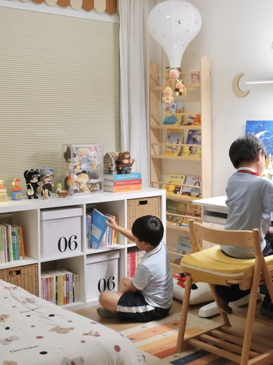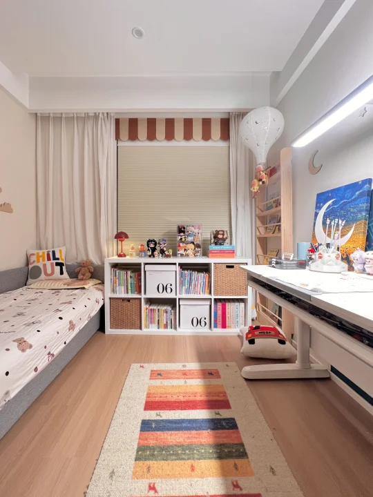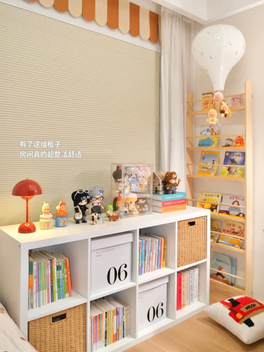 原本9平米的儿童房🏠 除了放一张1.5m的儿童床就没有多余的利用的空间了 跟着学半包围儿童房改造 我儿子也终于拥有属于他自己的全能小天地啦🎉 ⁻ 🛏睡眠区:放了1m的定制床 📖学习区:放了1.2m的大书桌 📦收纳区:放了77x147cm的宜家卡莱克八格柜 ⁻ 这个八格柜简直是收纳神器啊🤙🏻 不占地的同时又可以收纳很多书籍 对于小户型来说真的大大的释放了空间 ⁻ 经典的白色加上简约的造型 完全不挑装修风格 怎么搭配都很好看 39cm宽的台面还可以摆放各种玩具、台灯 房间的氛围感一下就上来啦🫶🏻 ⁻ 别看它就这么一个简单造型的柜子 但是有N种用法👍🏻 大家可以根据自己的需求去改造 我搭配了收纳箱和编藤收纳筐 真的一整个好看住哈哈哈哈🥳 ⁻ 卡莱克+床+书桌 搭个半包国儿童房 这布局真的绝了! 📦玩具杂物全能装下 空间利用到极致 还给娃一个妥妥的“避风港”,安全感爆棚👏🏻 📢小户型的姐妹我真的强烈安利 把空间利用的明明白白 性价比真的yyds❗️ 朋友来了都夸这个房间被我改造得真的太棒啦🥰