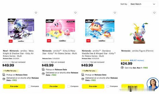 任天堂官方最近为《星之卡比:天空骑士》的Amiibo产品定价过于昂贵,以至于加起来已经完全足够购买一台Switch Lite。 在9月12日晚的那场任天堂直面会上,任天堂推出了两个《星之卡比:天空骑士》的新Amiibo,单品价格为49.99美元(折合约人民币356.14元),刷新了Amiibo史上最贵单价纪录。而在直面会上,任天堂又推出了三款新的Amiibo(下图中间三款),至此该系列总数达到了5款。 虽然目前只有Meta骑士开放预购,但其定价同样为49.99美元,因此另外两款的定价大概率也会遵循这一规律。如果玩家想要集齐这一整套的Amiibo,就得掏出49.99×5大约250美元(折合人民币约1781.05元)。 作为对比,一台Switch Lite的售价是199.99美元,你甚至还剩下50美元可以去买游戏。