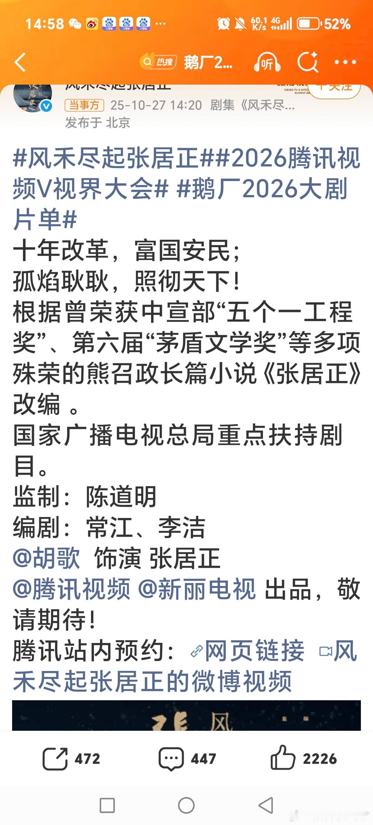 胡歌官宣出演《风禾尽起张居正》10年了又能看到老胡古装了期待开机[爱心][爱心]