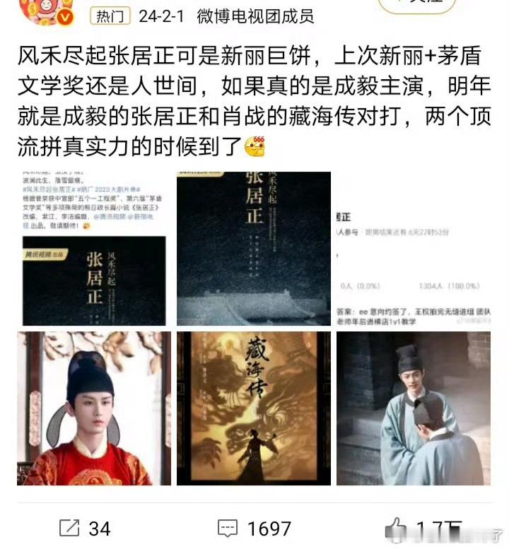 《风禾尽起张居正》官宣胡歌,成毅粉丝又双叒叕舔饼失败[doge]