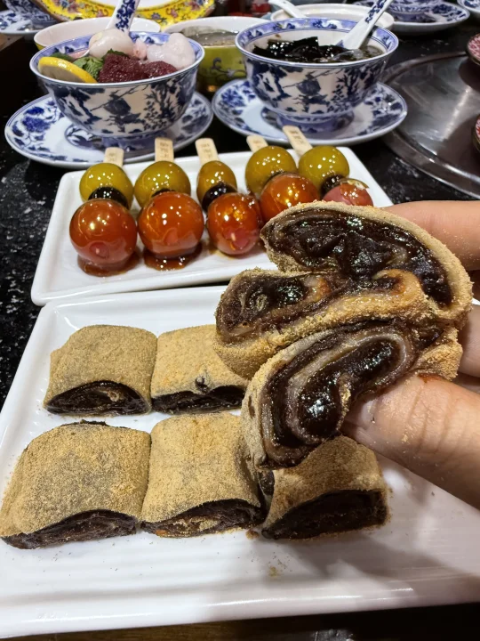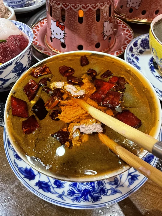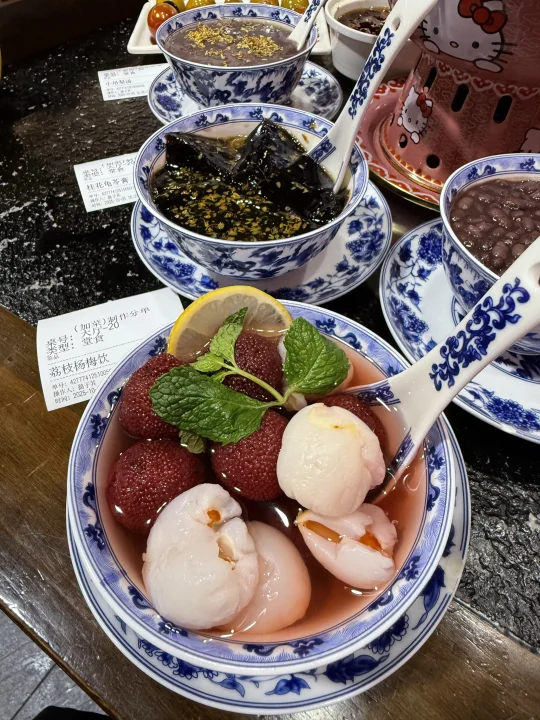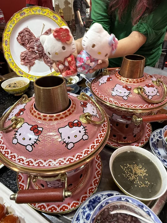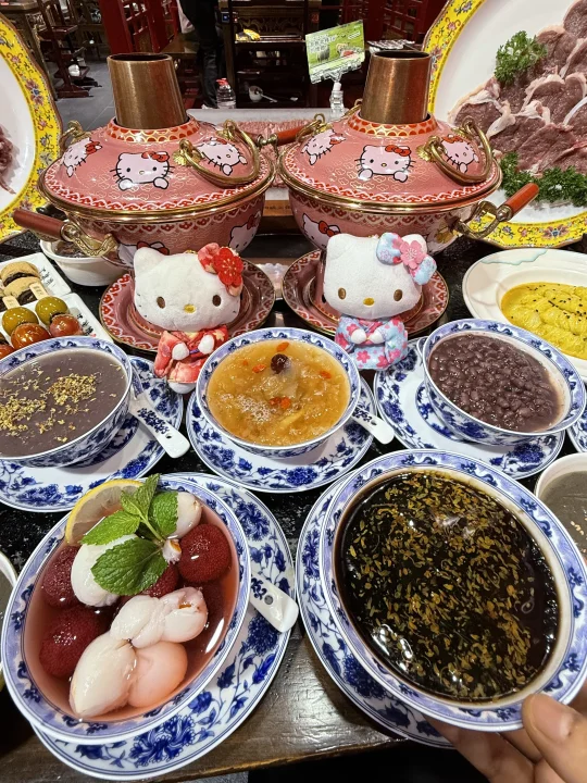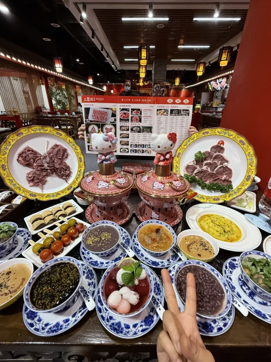 五刷了!!真正牛逼好吃的小店!! 现磨的黑芝麻酱蘸上牛骨髓,醇香弹滑香飞了!! 吃到了kitty铜锅涮肉,真的太可爱啦! 他家还有北京故宫同款的糖水,桂花龟苓膏,荔枝杨梅饮,小吊梨汤……貌美又好吃! 爆肚粉裹满了麻酱和油泼辣子,一口脆香!! 降温就馋这一口!!开车十几公里也要来吃的店!! 各种鲜切的羊肉牛肉品质真的很👍🏻,肉质鲜嫩,价格也很实惠,人均几十就能吃的很满足!