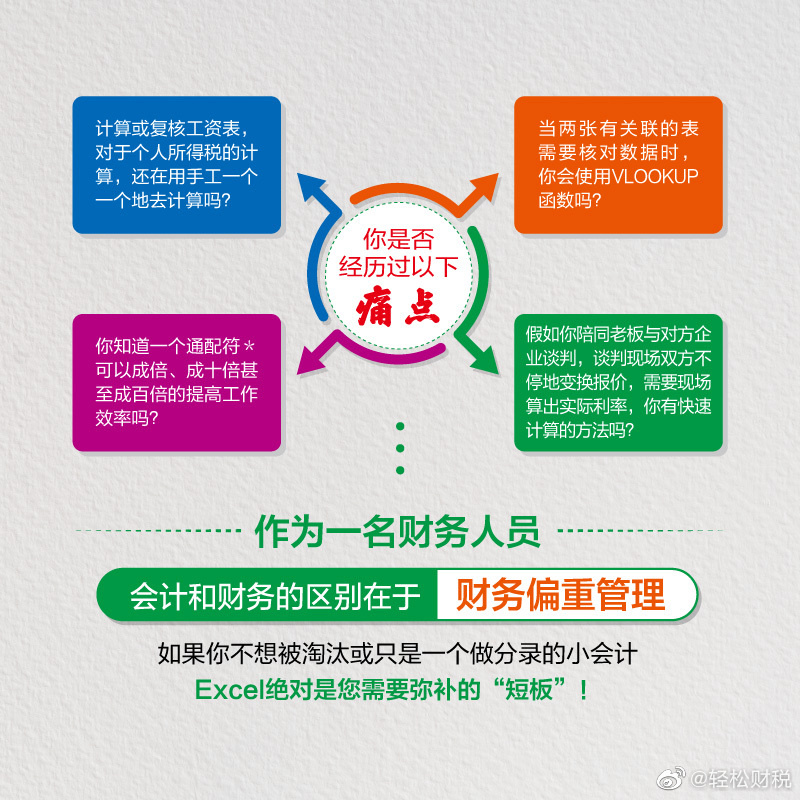 作为一名财务人员,会计和财务的区别在于财务偏重管理,如果你不想被淘汰或只是一个做分录的小会计,Excel绝对是你需要弥补的短板!