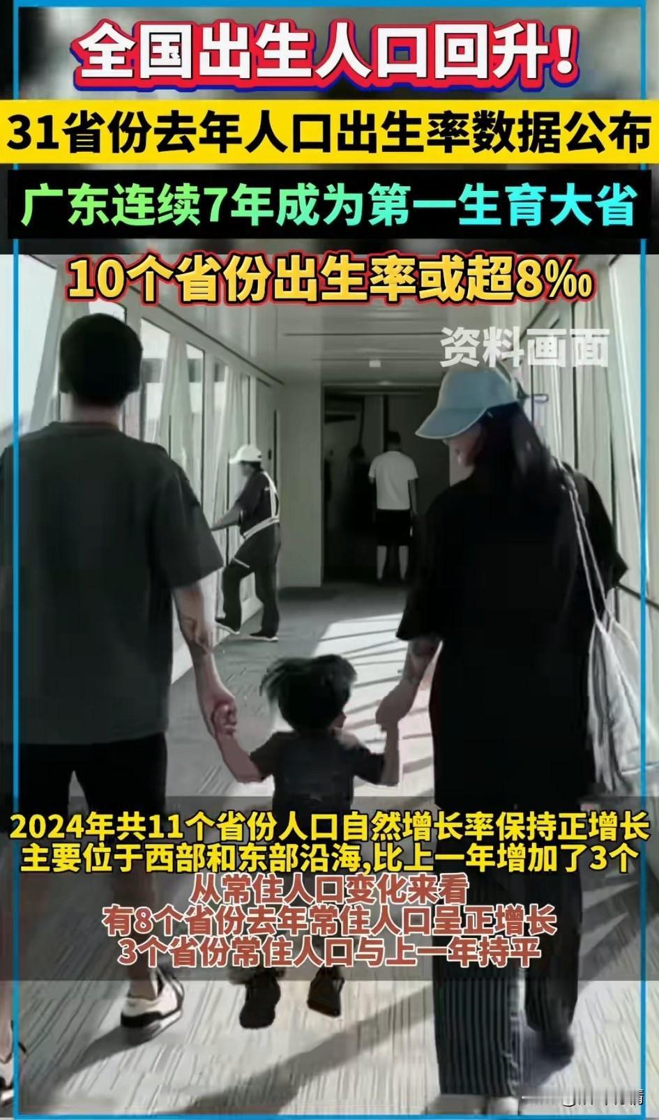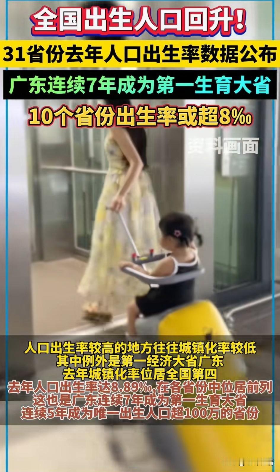 近日公布的全国出生人口回升引关注, 不是说中国的出生人口不断下降吗? 原来这是2024年的数据, 那一年为啥出生这么多, 想必大家都知道原因, 谁不想有一个龙宝宝, 毕竟十二生肖是有魔力的, 所以说也不用惊讶, 因为现在的结婚率依旧低迷, 这就决定了出生人口依旧不容乐观, 不信你到时候可以看2025年的出生数据,值得关注的是广东连续7年成为第一声生育大省,可能是潮汕文化多子多福的原因,再加上那里经济发达, 出生人口比较高也不足为奇, 我国的出生人口依旧不容乐观, 幼儿园倒闭潮和小学合并就是例证! 大家对于广东出生率远高于其他地方怎么看? 中国出生人口率 人口出生率 出生人口新趋势 出生率对比 新出生人口下降