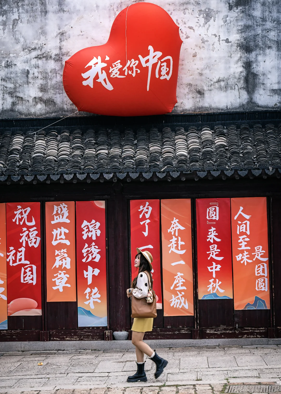 进入老街过了桥就是,可以看到电影主题墙和北上♥️布置