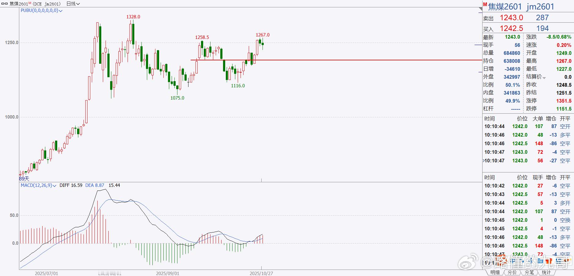 期货 焦煤和预期的一致,目前进入到回调震荡!