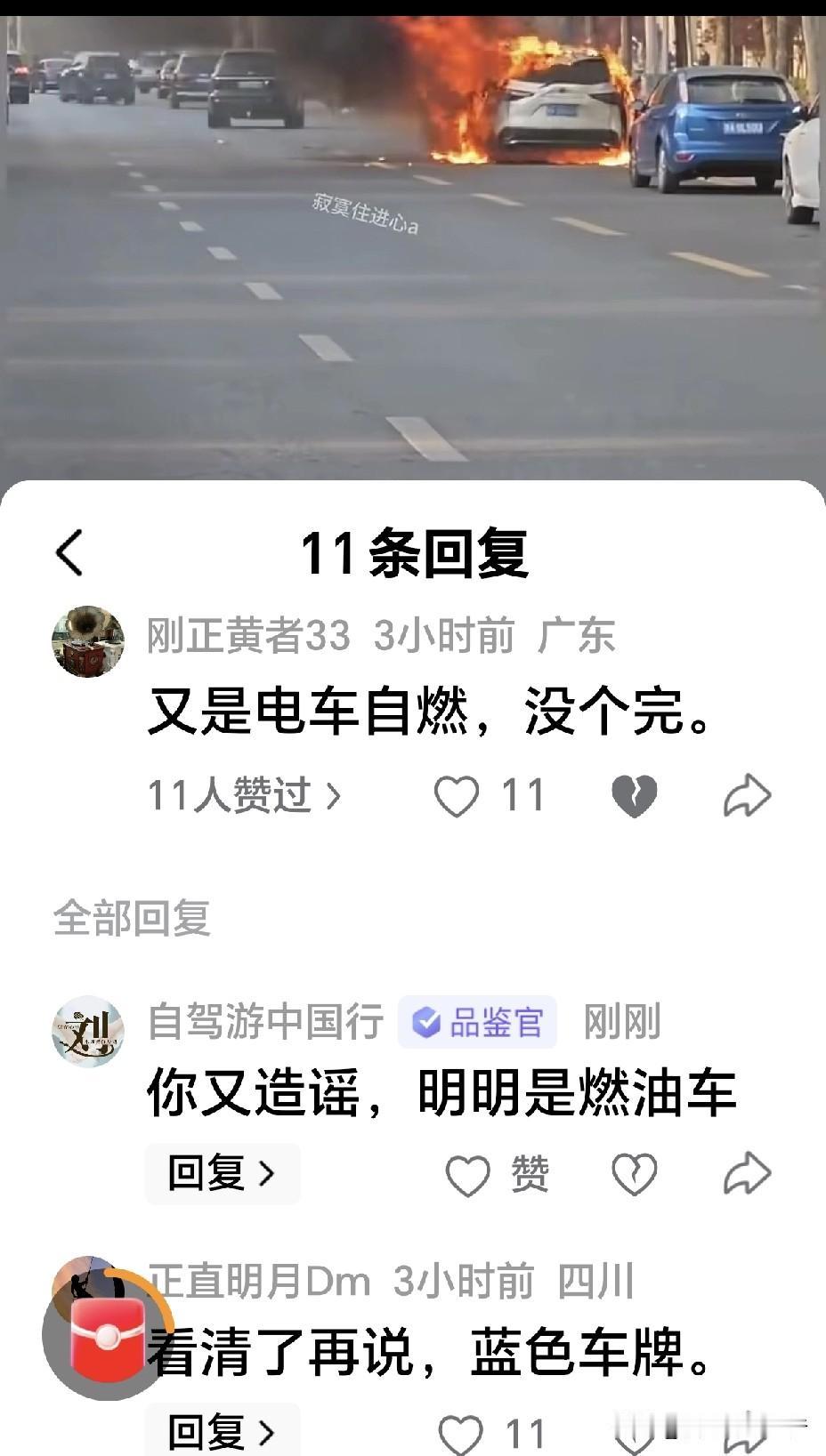 又一辆传统燃油车自燃了,竟然还有人说是新能源车,真是造谣惑众。 四周温度是如此的