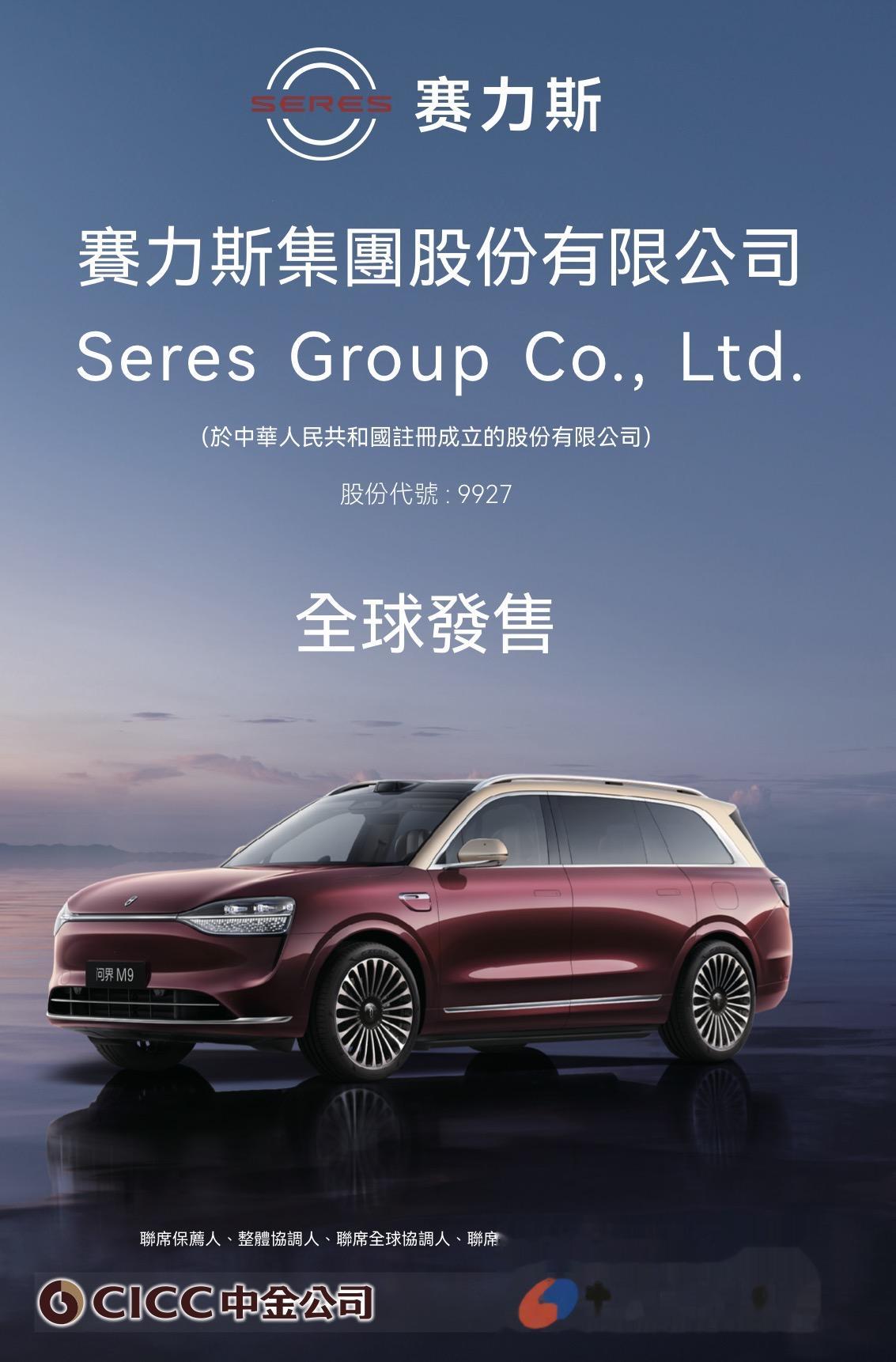 10月27日早间,赛力斯(601127.SH)在香港联交所发布公告,公司拟全球发售1.002亿股H股(视乎发售量调整权及超额配股权行使与否而定),中国香港发售股份1002万股,国际发售股份9018万股,10月27日至10月31日开始招股,预期定价日为11月3日,发售价将不高于每股H股131.5港元。