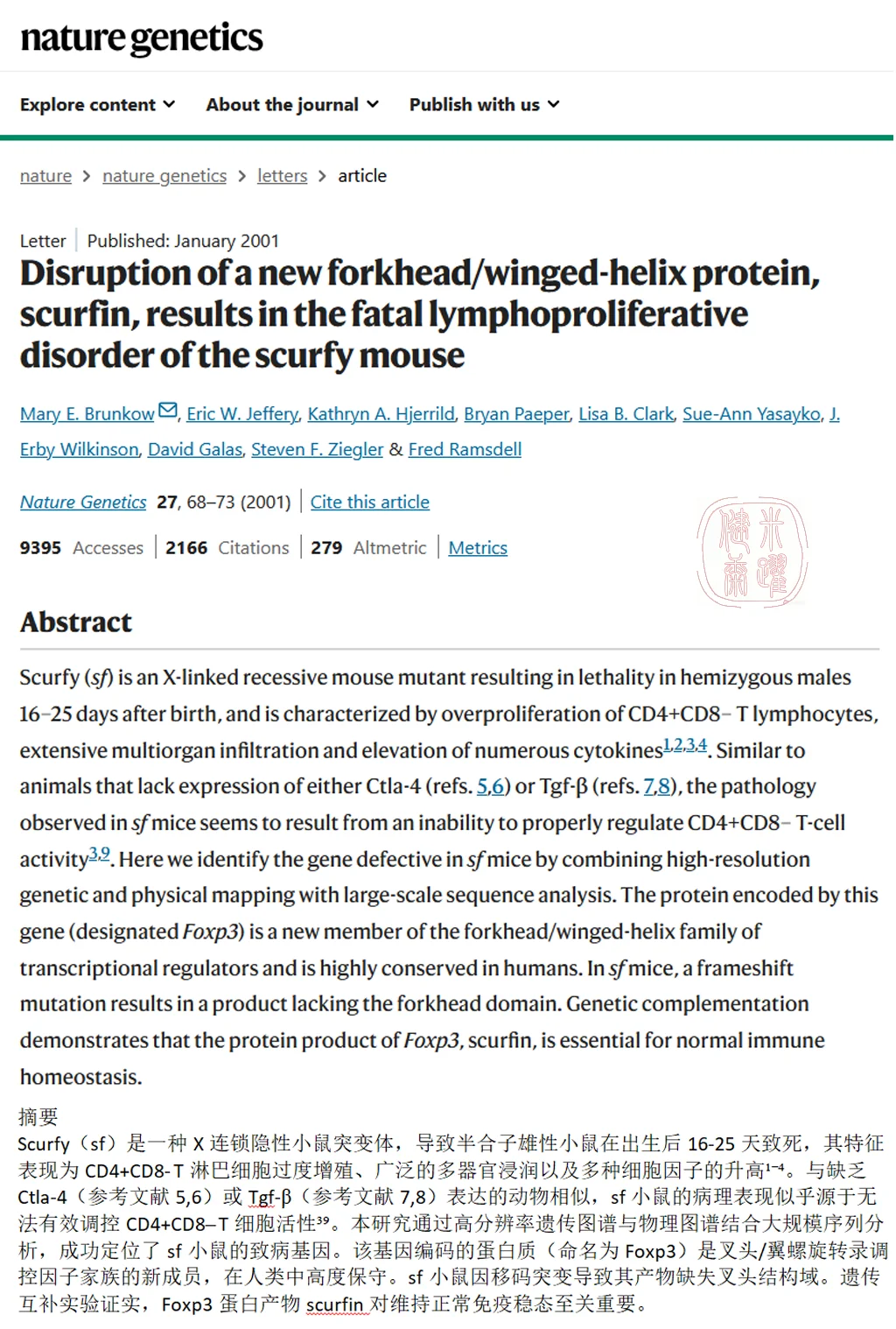 真正的考验发生在她加入生物技术公司后。面对一种名为“scurfy”的突变小鼠,她和同事开启了长达三年的“分子长征”。在没有全基因组测序技术的年代,他们通过数百次杂交实验,像绣花般一寸寸缩小染色体范围;反复设计引物,筛选差异片段。这些动作单一得让人疲惫,但每一次重复都在积累着微小的进展。终于,FOXP3基因的突变浮出水面——这个调节性T细胞的“主控开关”的发现,为自身免疫疾病治疗打开了全新的大门。