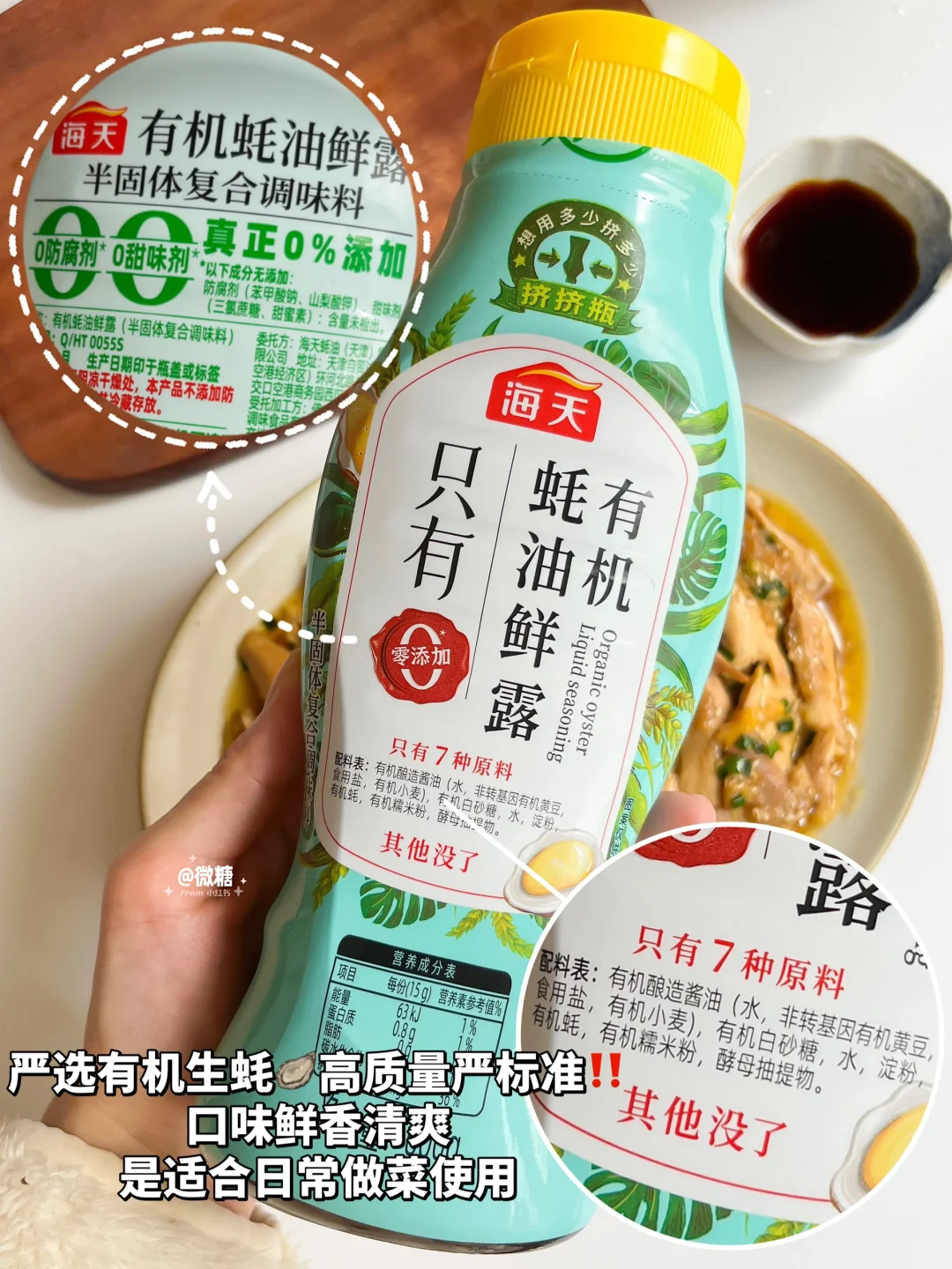 有了孩子后比较注重调味品健康,海天这款有机生抽采用有机黄豆、小麦纯酿,只有6种原料 全程有机👍🏻中美欧三方认证 ✨另外这款有机蚝油鲜露也是严选有机生蚝🦪全程有机可追溯,高质量严标准‼️口味鲜香清爽,很适合日常做菜使用哦~