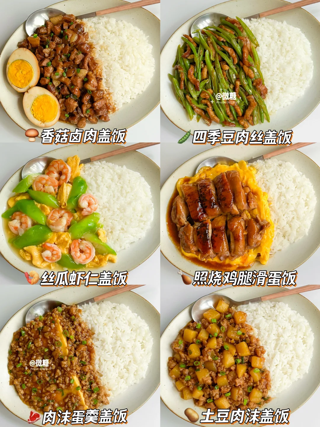 暑假孩子在家 午餐不知道吃什么的看过来~天气又热,懒得做饭😑就做个简单又快手的盖饭吧!分享6款巨巨好吃的梦中情饭🥹大人小孩都特别爱吃‼️秒光盘!快来学🤟🏻 🍄🟫香菇卤肉盖饭 🫛四季豆肉丝盖饭 🥒丝瓜虾仁盖饭 🍗照烧鸡腿滑蛋饭 🥩肉末蛋羹盖饭 🥔土豆肉末盖饭 每一款都嘎嘎下饭!简单快手又营养好吃😋家里有饭渣宝宝的快去试试~