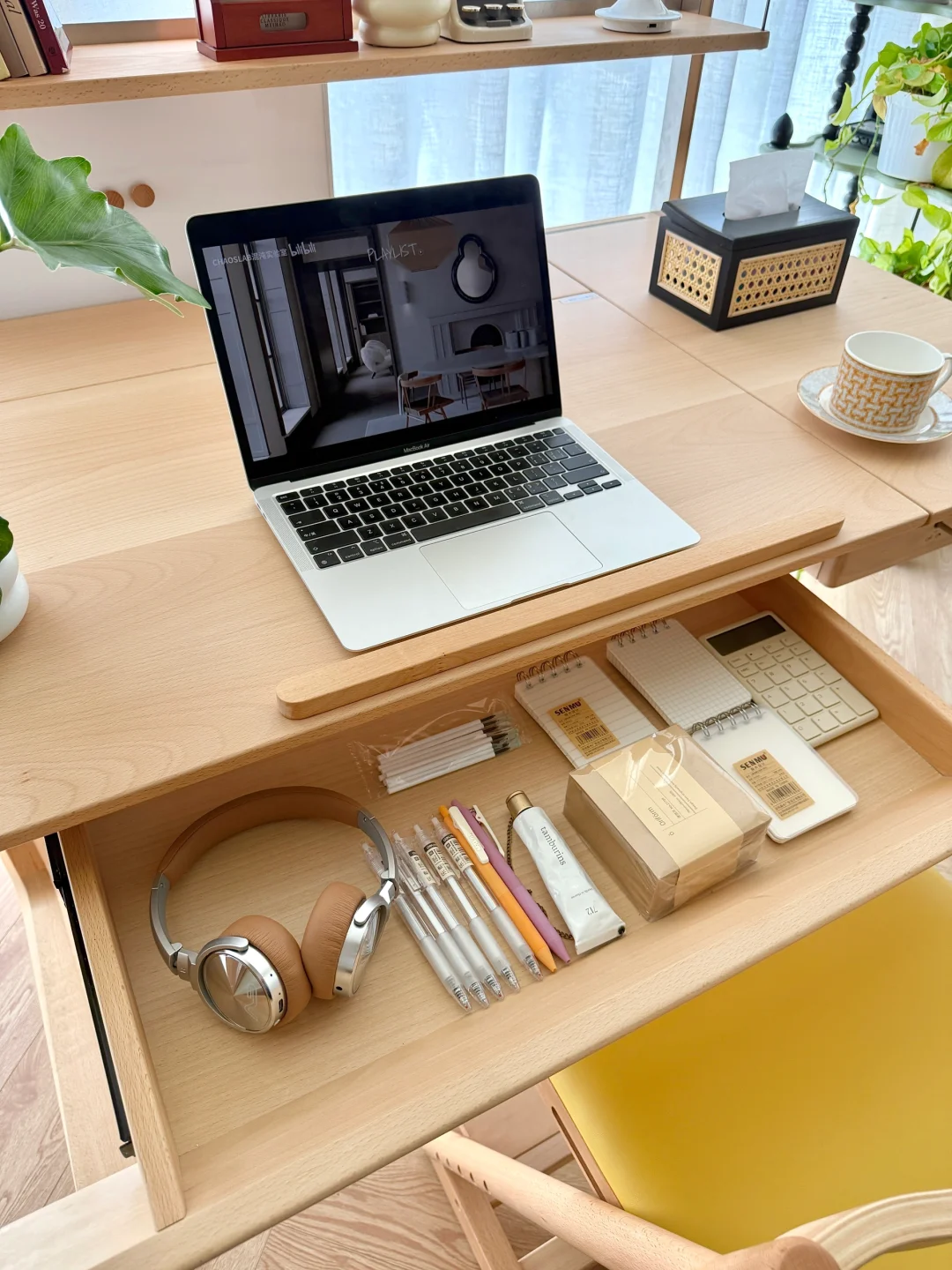 桌子下方还有一个大抽屉能收纳不少办公用品