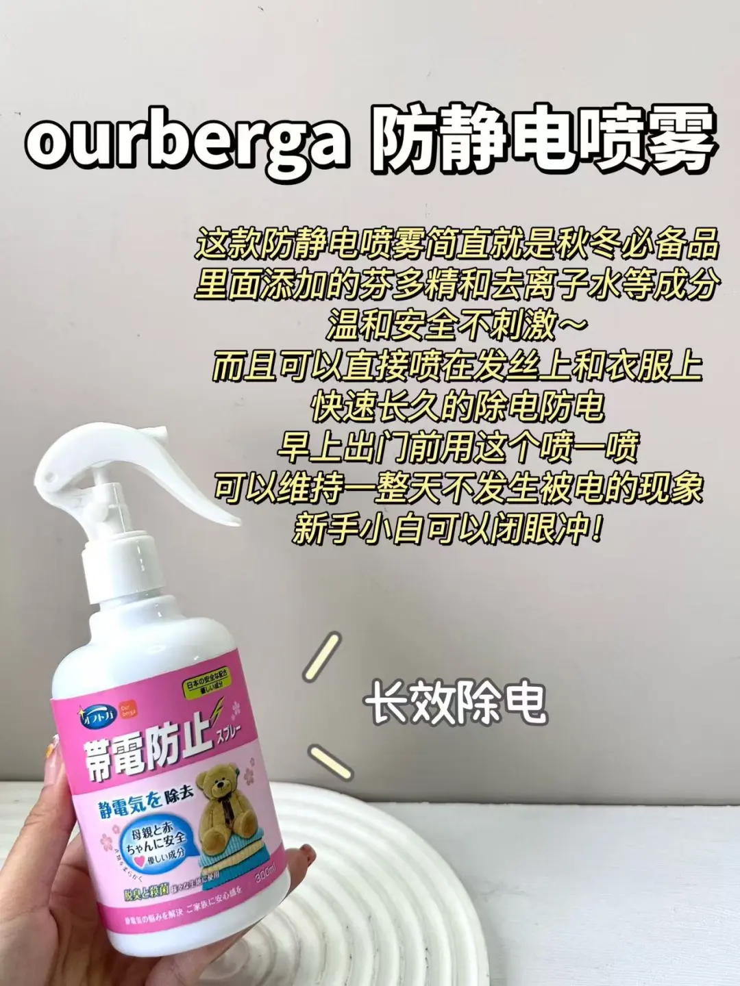 现在已经是秋冬季节了!😖每到这个时候全身都是静电真的很烦人!! 姐妹们也是很讨厌被电吧!尤其是每次在外面头发静电炸毛之类的... 最近就和朋友一起买了些近期比较火的几款性价比高的防静电喷雾! 用了半个多月整理出来的测评! 🤗快来看看有没有适合你们的~姐妹们理性种草一下👉 🌷ourberga防静电喷雾——长效除电 🌷花王防静电喷雾——抚平褶皱 🌷魅她防静电喷雾——除电温和 🌷cucm防静电喷雾——喷雾细腻 🌷onefull防静电喷雾——小巧便携 🌷macromaple防静电喷雾——日常除电 🌷gafflejie防静电喷雾——柔顺消臭 🌷milachuchu防静电喷雾——除电增香