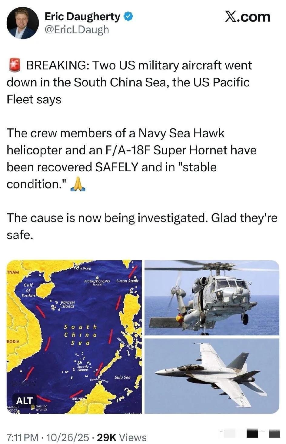 尼米兹号南海一天坠两架战机,哪是“末日之行”的意外?这分明是美国霸权透支的具象化!别再盯着特朗普东盟峰会的虚架子,航母甲板上的事故才藏着真相。 10月26日这事儿太戳穿本质了:先是MH-60R直升机坠海,不到一小时F/A-18F战斗机又栽进南海,好在5名机组人员都救回来了[__LINK_ICON]。更讽刺的是,这可是尼米兹号的“最后一次部署”,服役50年早超期服役,本来想最后在南海秀把肌肉,结果落得个灰头土脸退役的下场。 有人猜是不是和中方有关?根本没必要。解放军向来克制,中美谈判关键期更不会节外生枝,这锅得美军自己背[__LINK_ICON]。真正的病根藏在美国骨子里:一边穷兵黩武到处耀武扬威,让装备和人员常年超负荷运转;一边内部乱成一锅粥,政府关门快一个月,130万美军发不出薪水,家属都在排队长领食品援助,官兵哪有心思好好操作? 再说装备本身,尼米兹号老得快散架,弹射系统用了半个世纪,F/A-18机龄平均近20年,去年美军坠机都41架了,是2023年的两倍,早成“坠机大国”了。高强度挑衅逼得自己人神经紧绷,老装备撑不住,人心又散了,不摔机才怪。 这哪是偶然?是霸权扩张速度赶不上内部崩塌速度的必然。秦安说得对,美国变差根源在自己,南海的战机残骸就是最狠的警示。你们觉得,这种“实力露怯”会是常态吗?